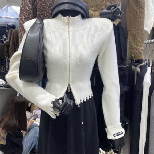 DearGod正韓女裝E Su立領拉鍊針織開衫女韓國冬季短款修身顯瘦百搭長袖毛線上衣