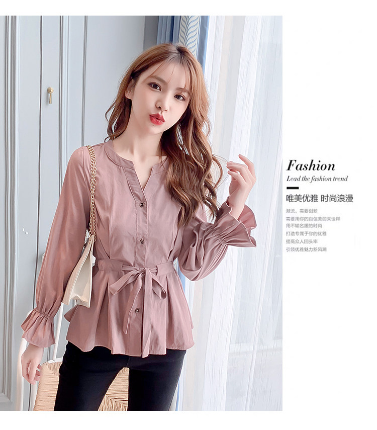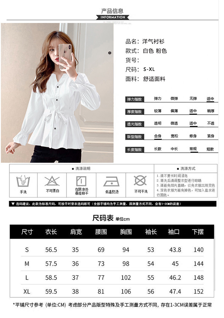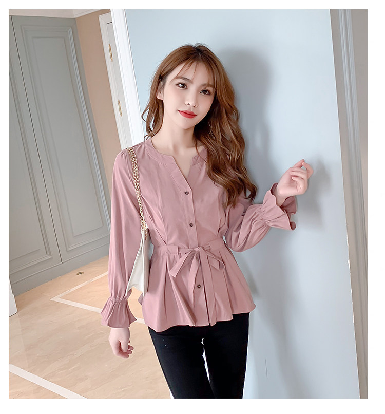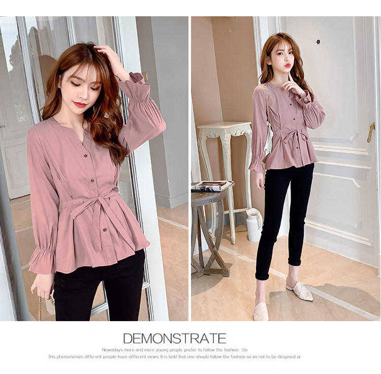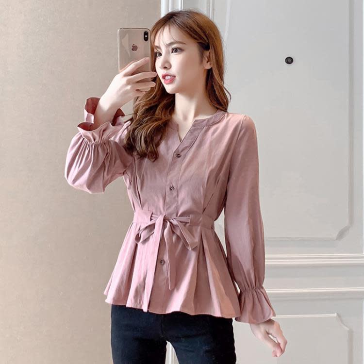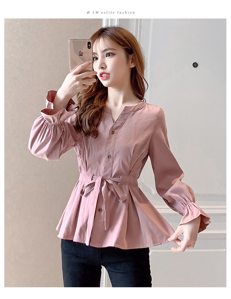 DearGod正韓女裝2022年秋冬新款女正韓系帶收腰長袖v領上衣襯衫女設計感小眾襯衣