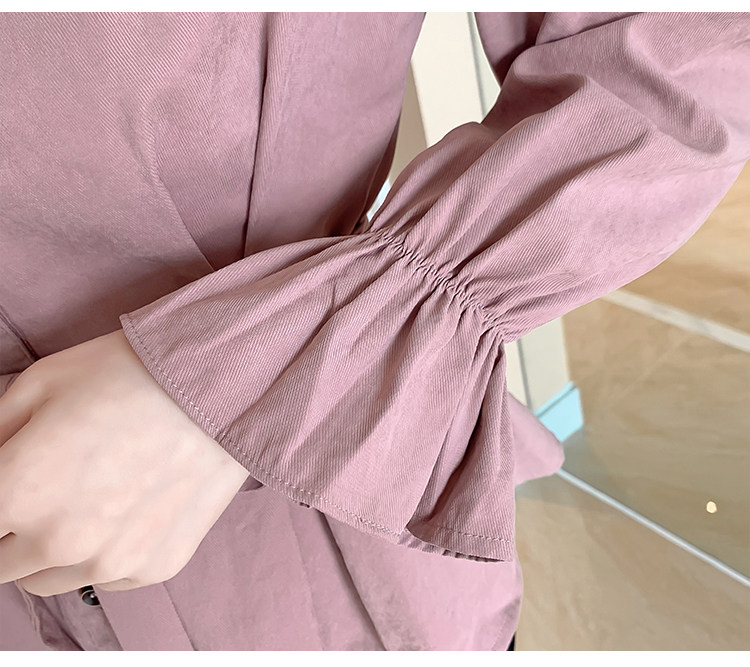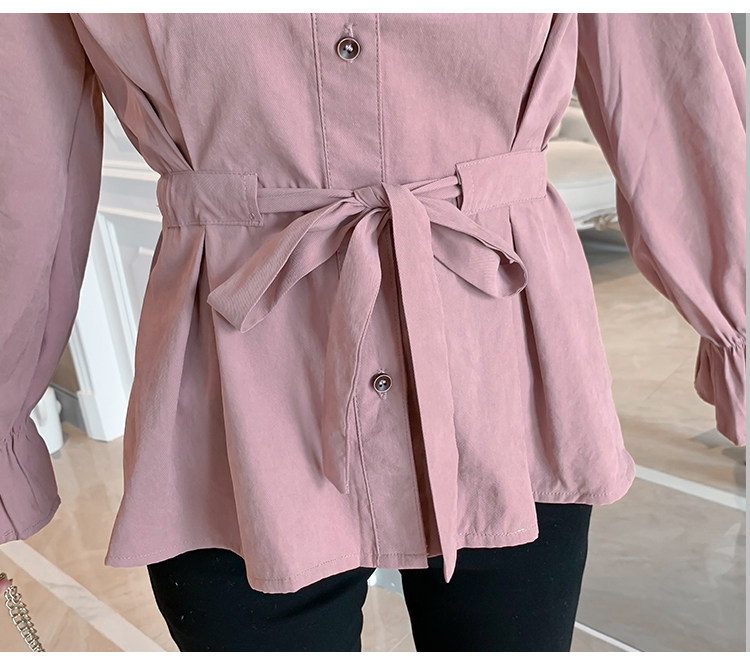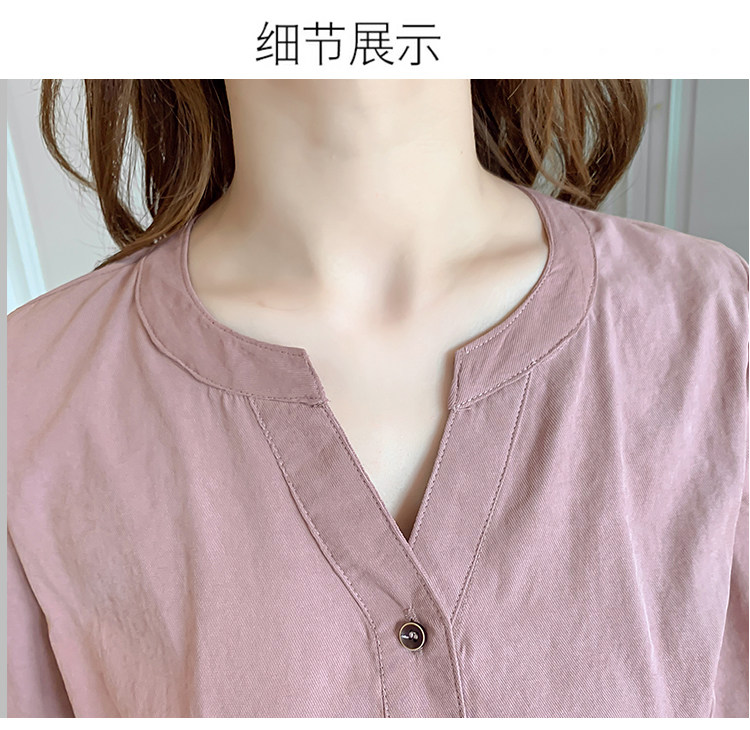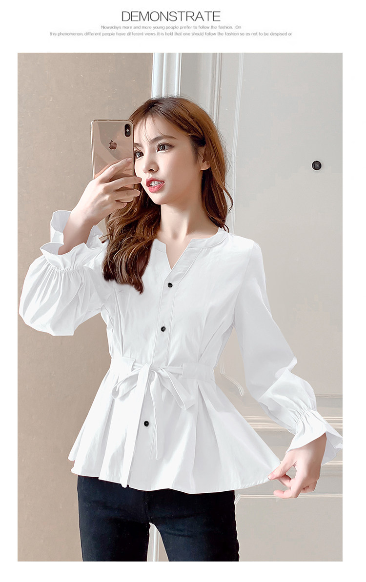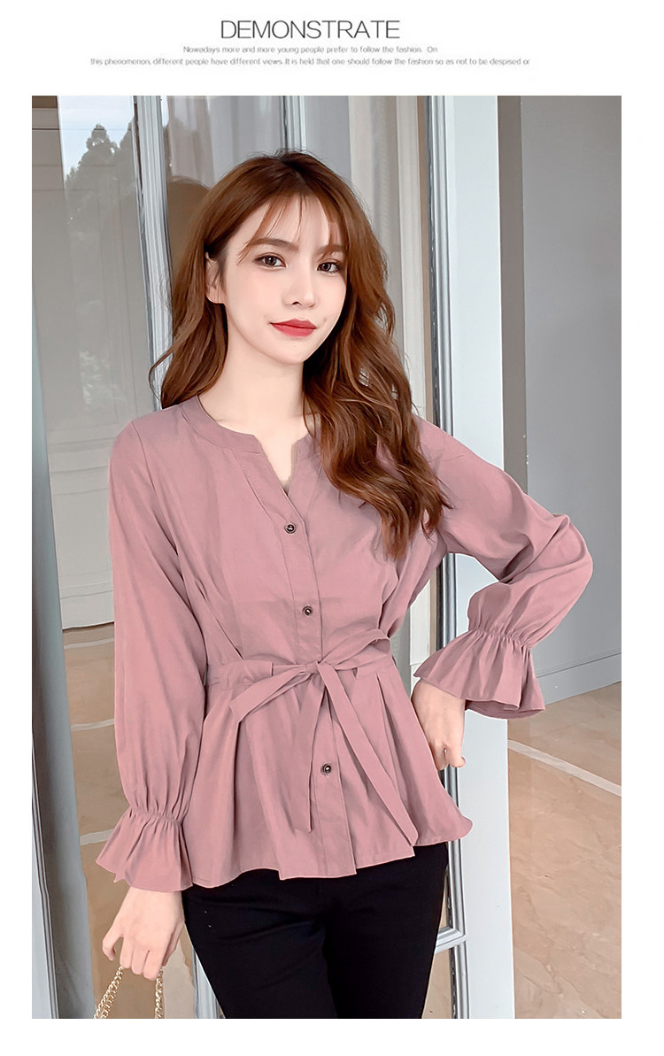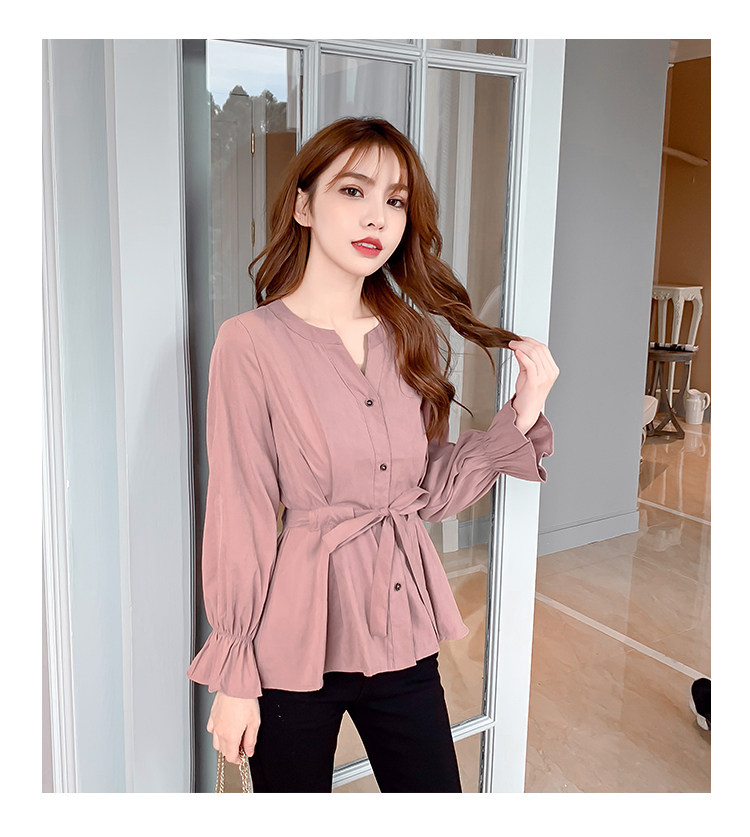 DearGod正韓女裝2022年秋冬新款女正韓系帶收腰長袖v領上衣襯衫女設計感小眾襯衣