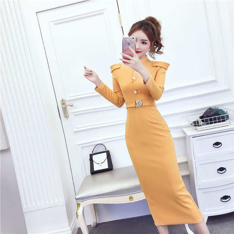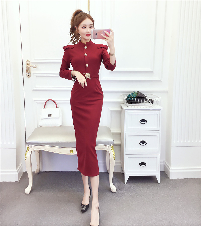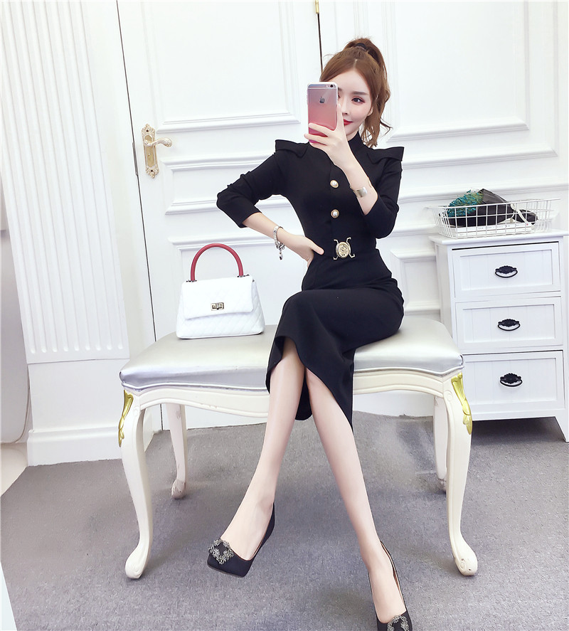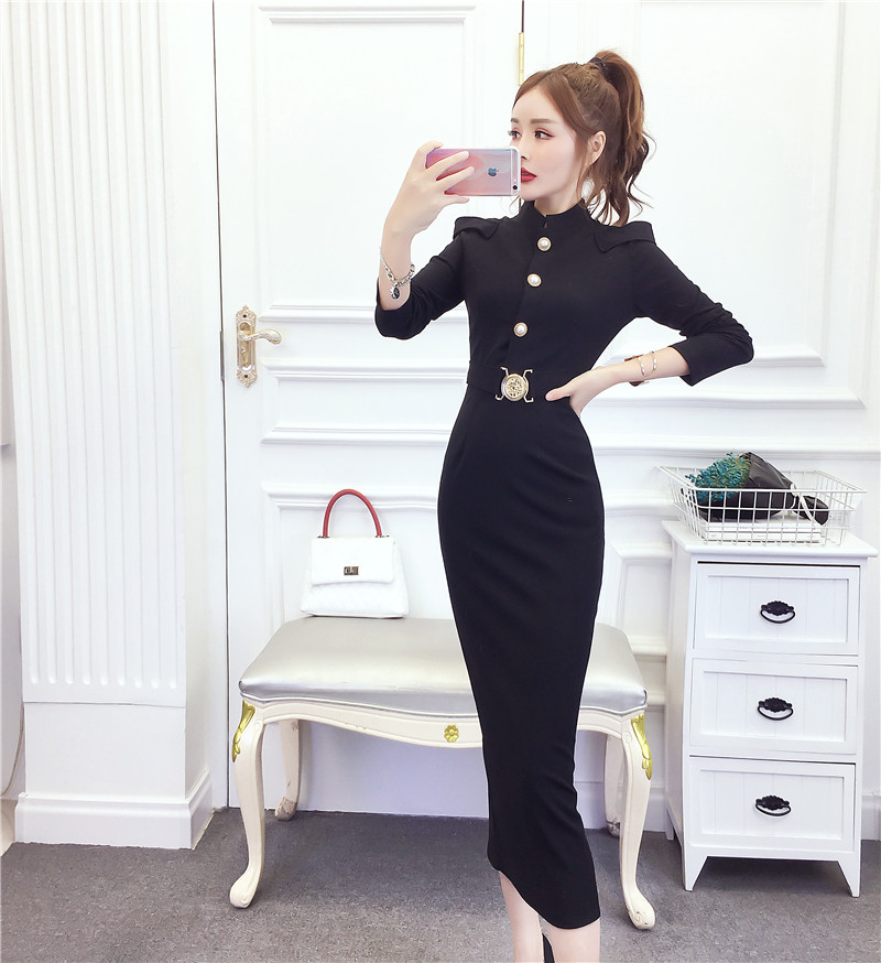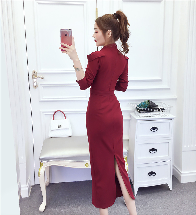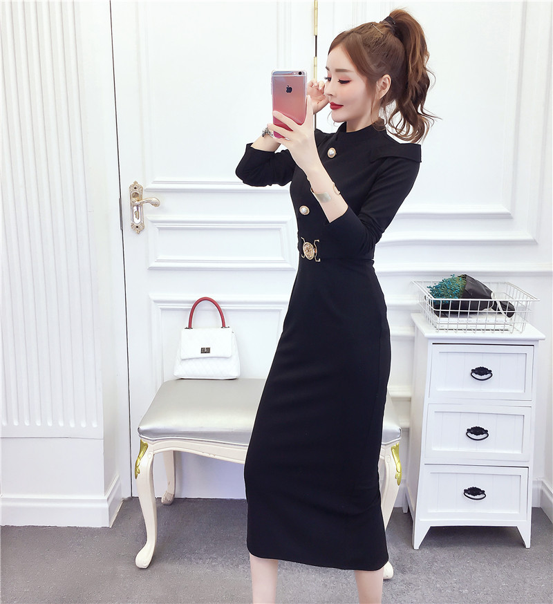 DearGod正韓女裝2022秋冬季新款法式時尚氣質名媛長袖禮服長裙顯瘦包臀連身裙女裝