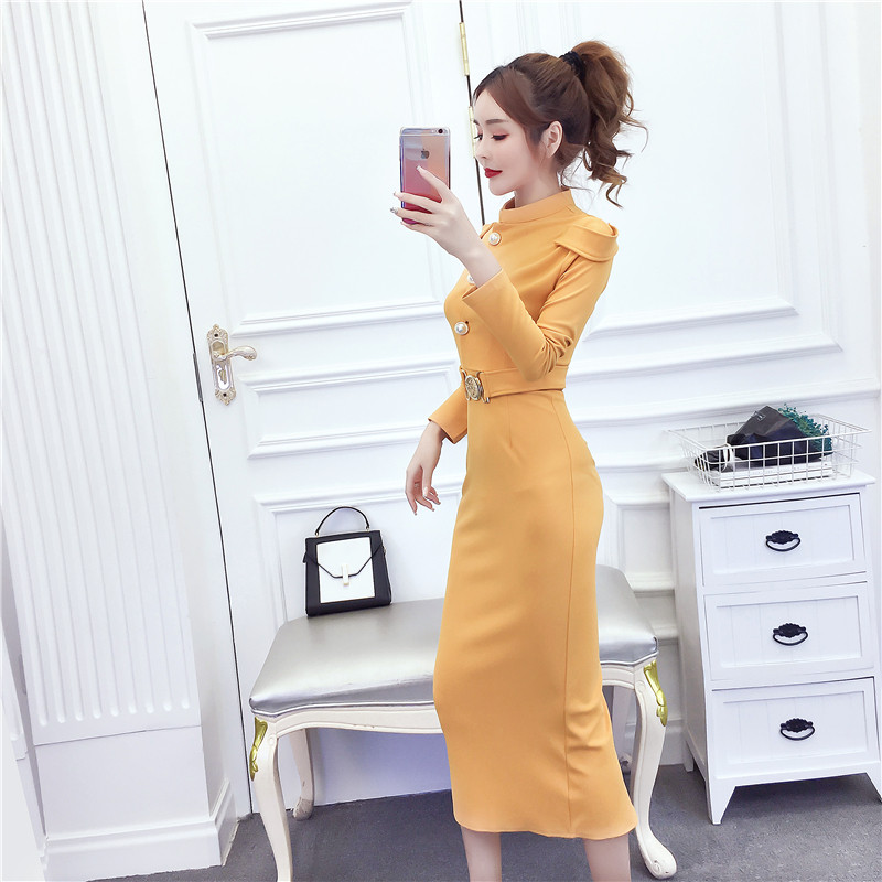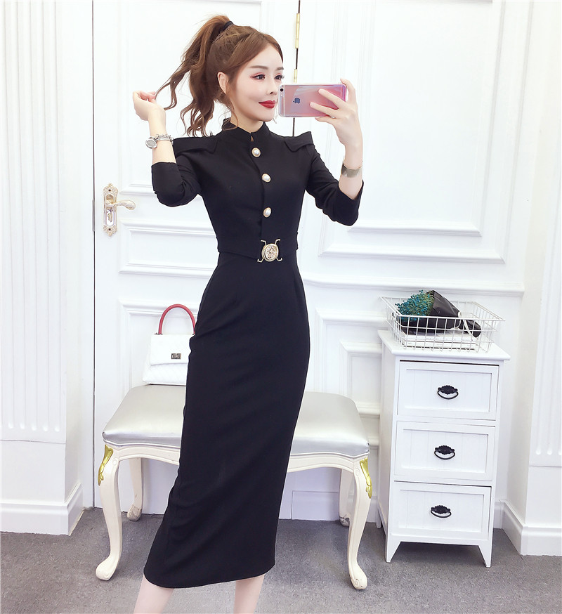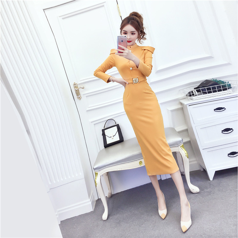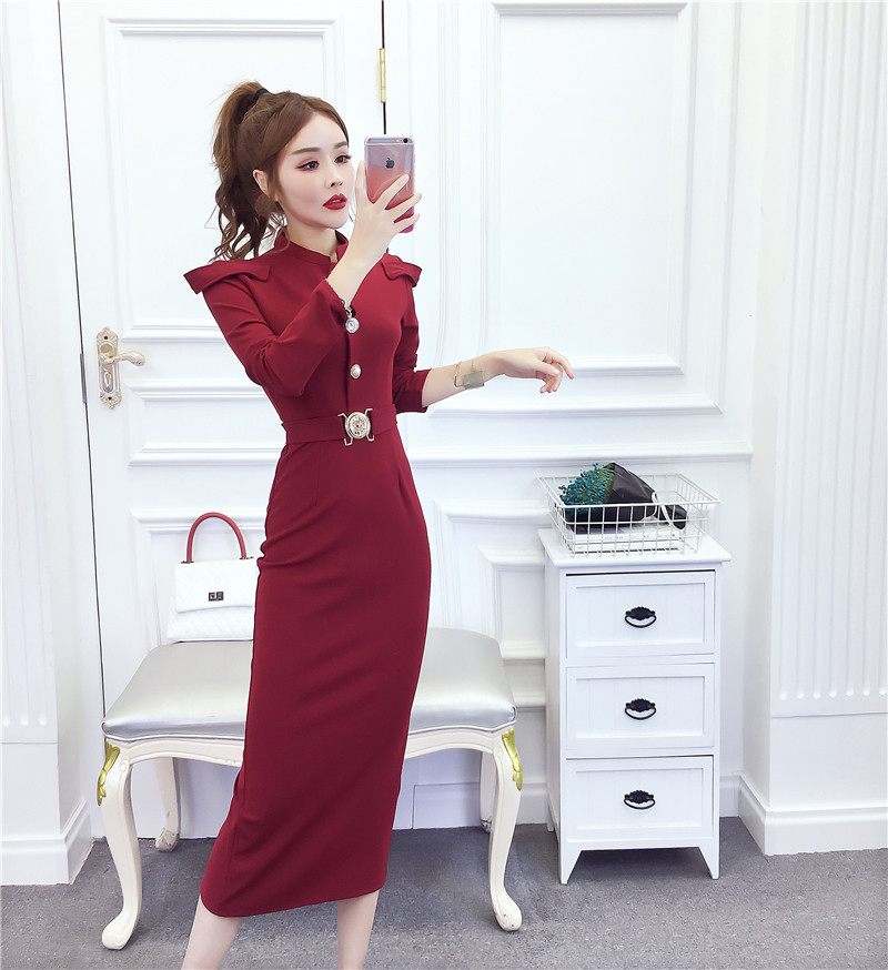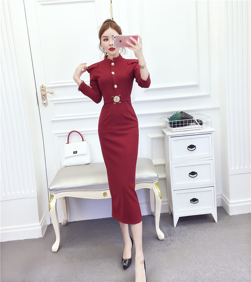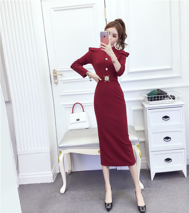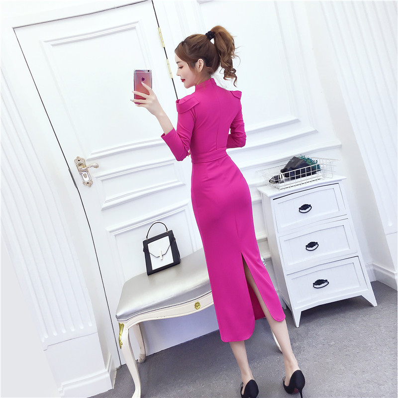 DearGod正韓女裝2022秋冬季新款法式時尚氣質名媛長袖禮服長裙顯瘦包臀連身裙女裝