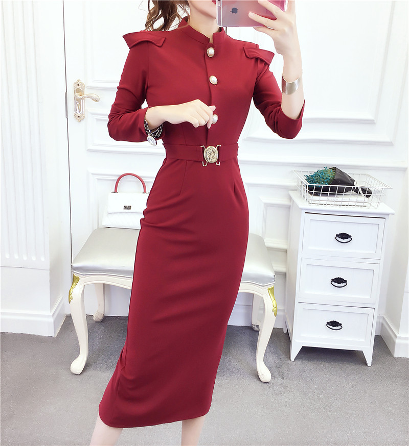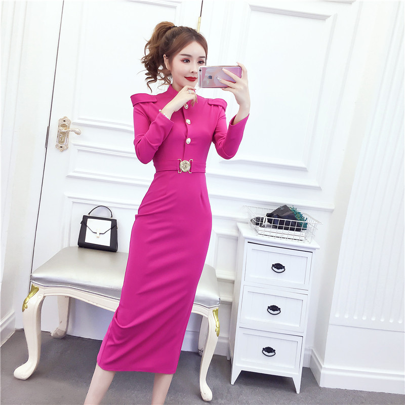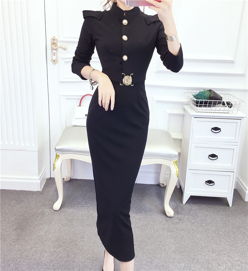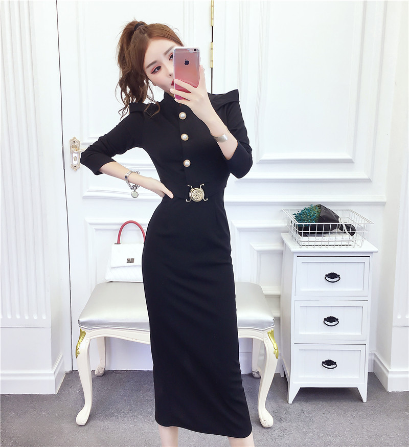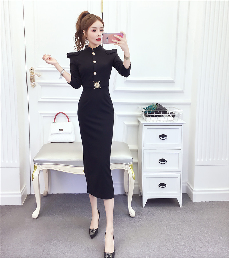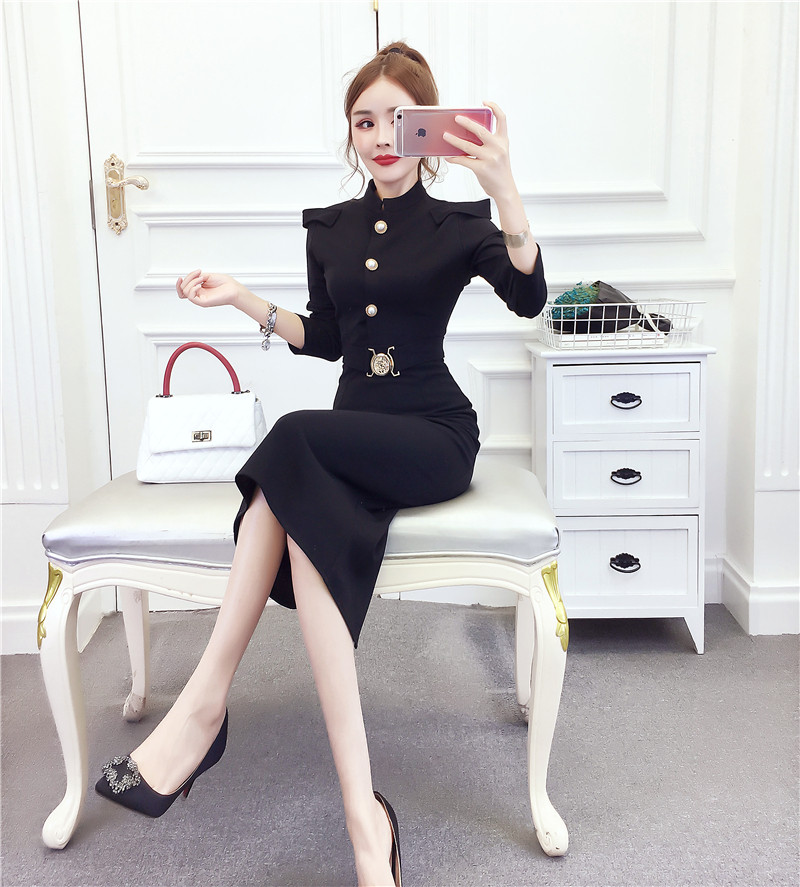 DearGod正韓女裝2022秋冬季新款法式時尚氣質名媛長袖禮服長裙顯瘦包臀連身裙女裝