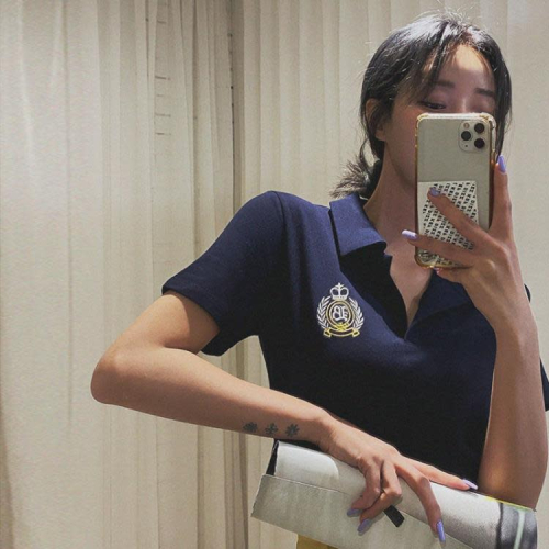 DearGod正韓女裝少量現貨韓國東大門正品代新 夏裝學院刺繡POLO領短款復古短袖T恤