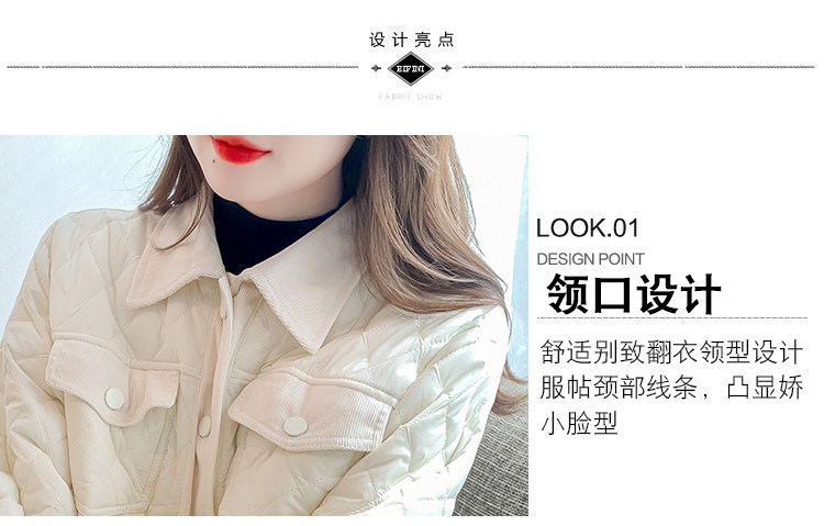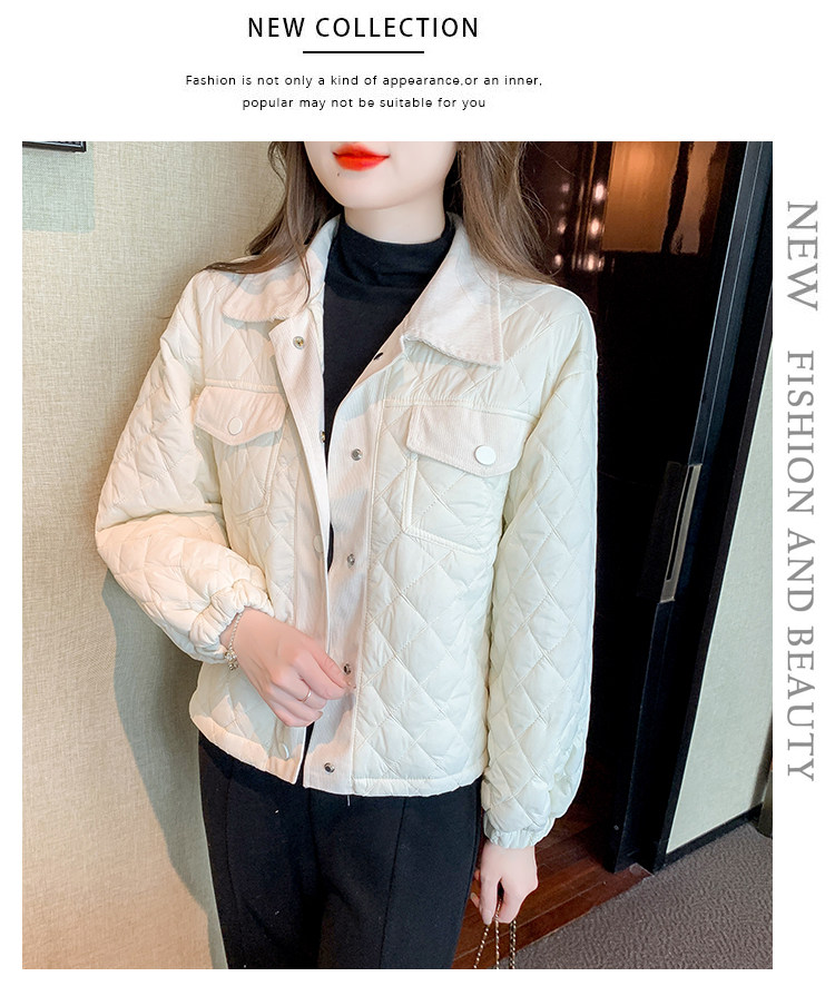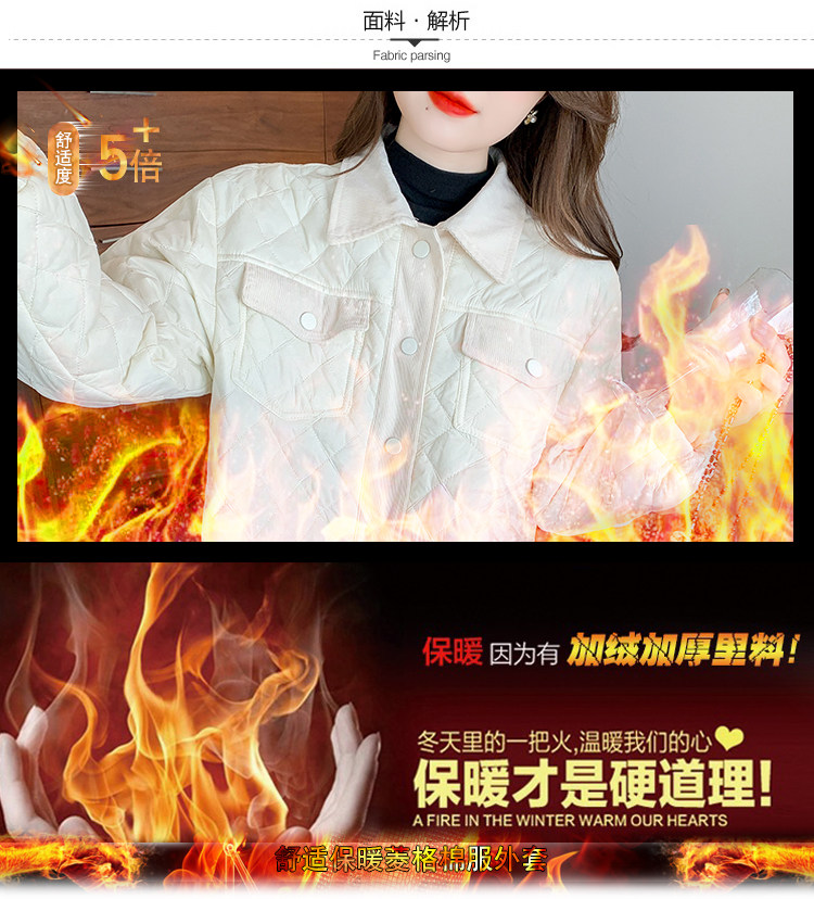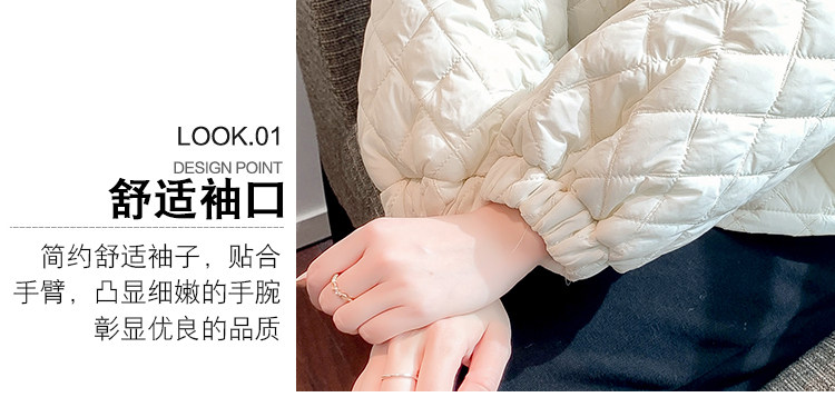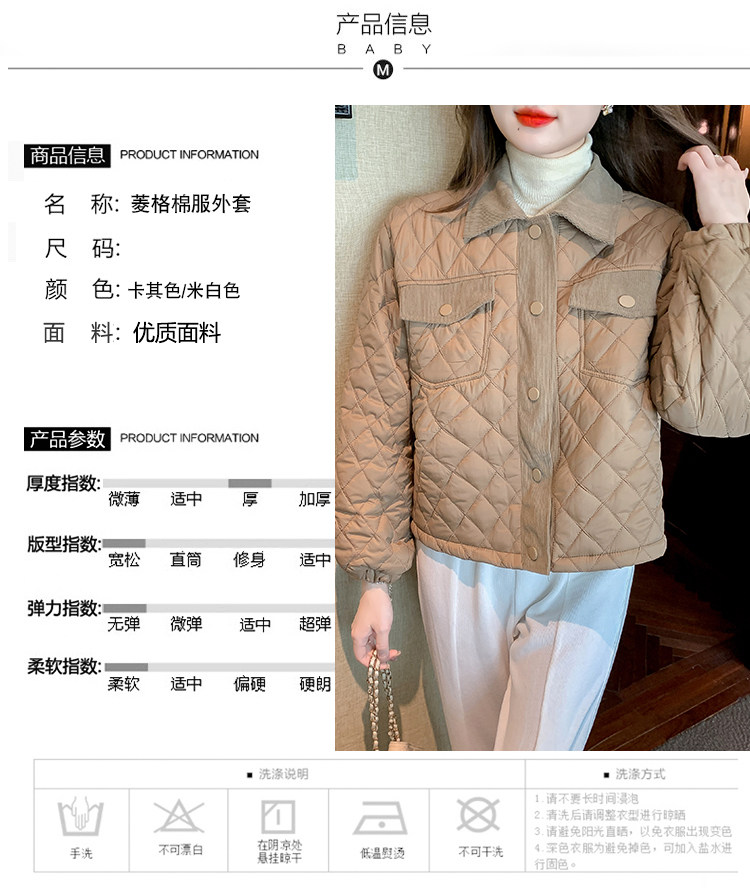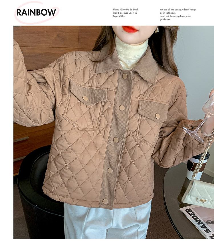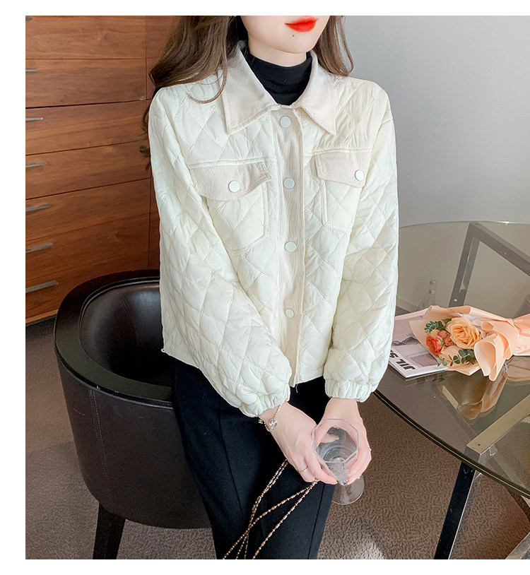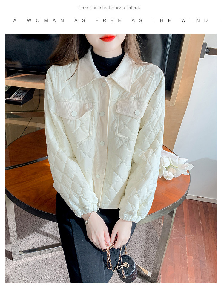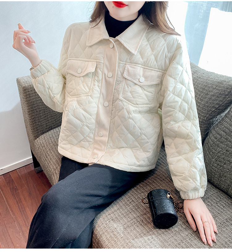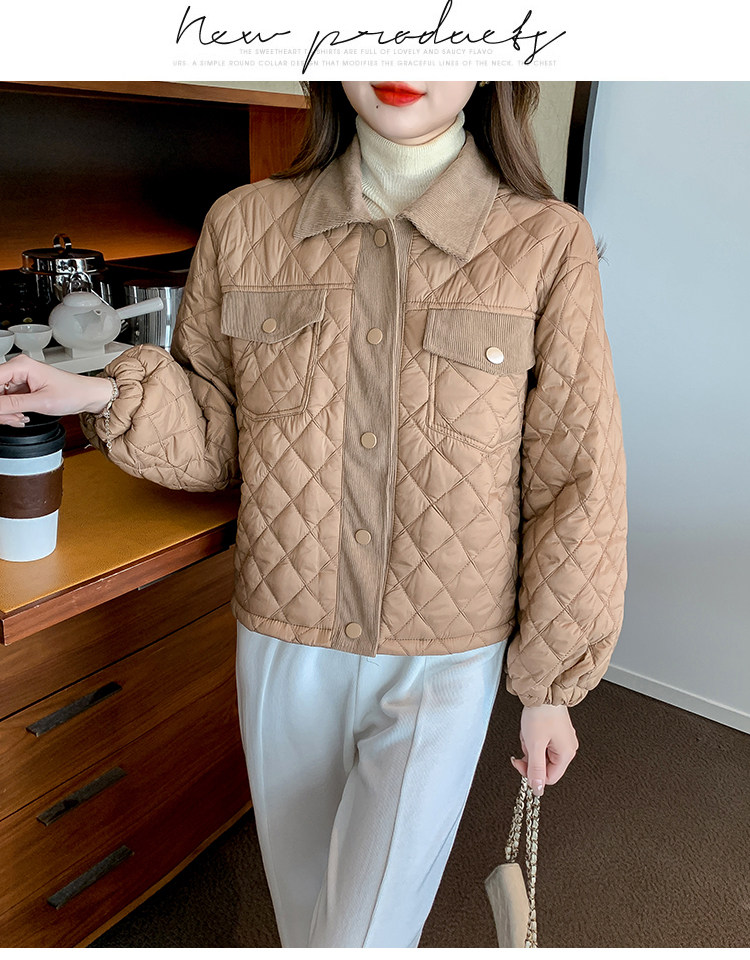 DearGod正韓女裝小洋家2022新款秋冬輕薄保暖百搭小個子polo領棱格棉衣外套女裝