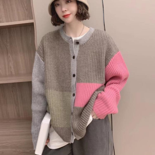 DearGod正韓女裝歐洲站2022秋冬新款歐貨不規則撞色拼接排扣全羊毛針織開衫毛衣女