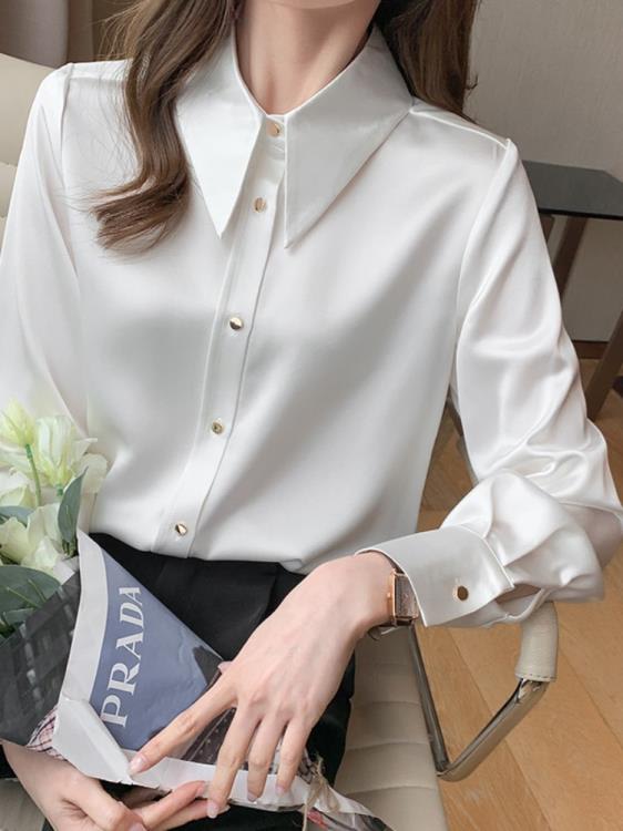 DearGod正韓女裝白色襯衫女設計感小眾輕熟小個子2022年新款洋氣上衣長袖雪紡襯衣