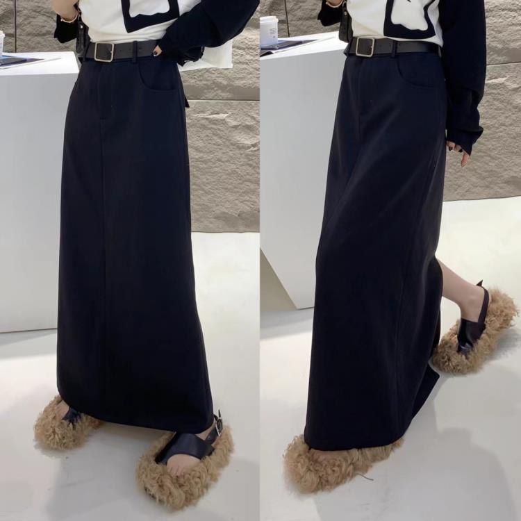 DearGod正韓女裝歐洲站2022秋季歐貨配腰帶時尚過膝中長款西裝半身裙黑色直筒長裙