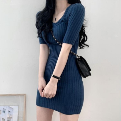 DearGod正韓女裝韓國chic小個子修身短款V領針織連身裙女夏季新款純欲包臀短裙子洋裝