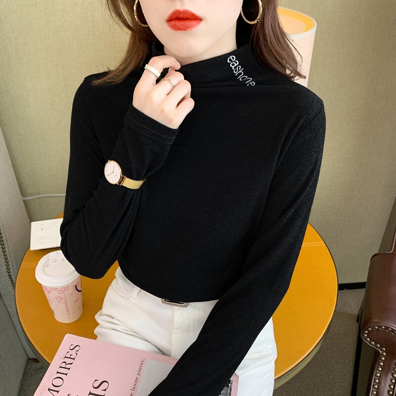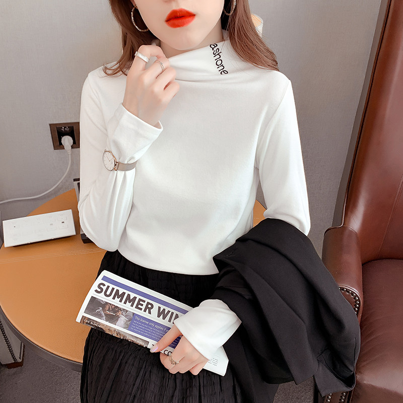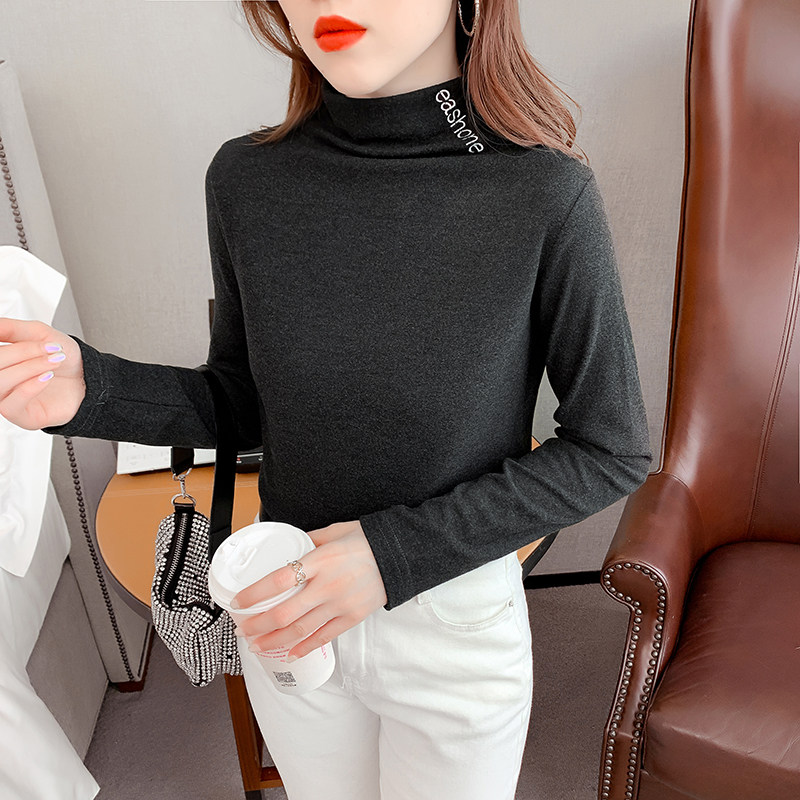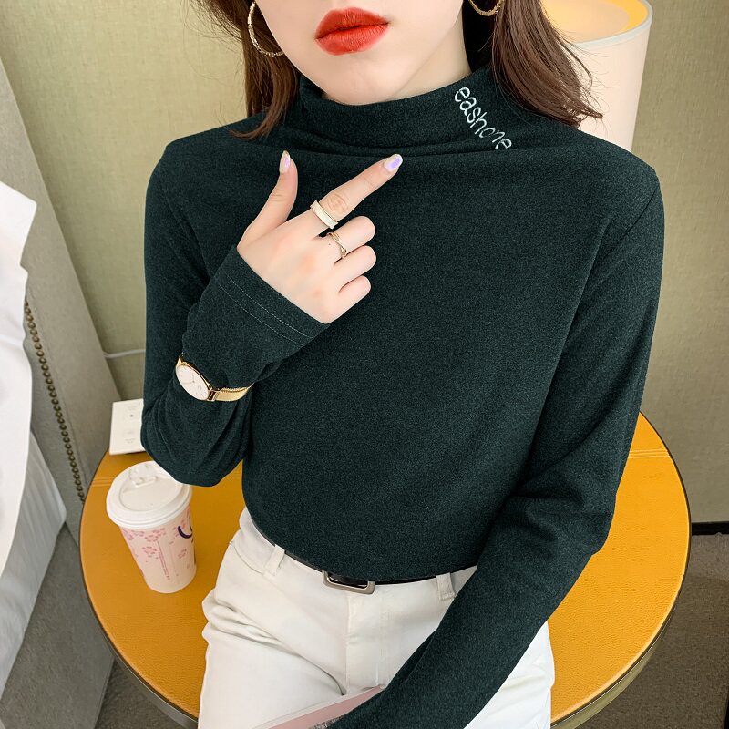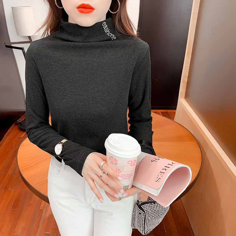 DearGod正韓女裝2022秋冬季新款內搭半高領長袖磨毛打底衫女上衣修身純色正韓t恤