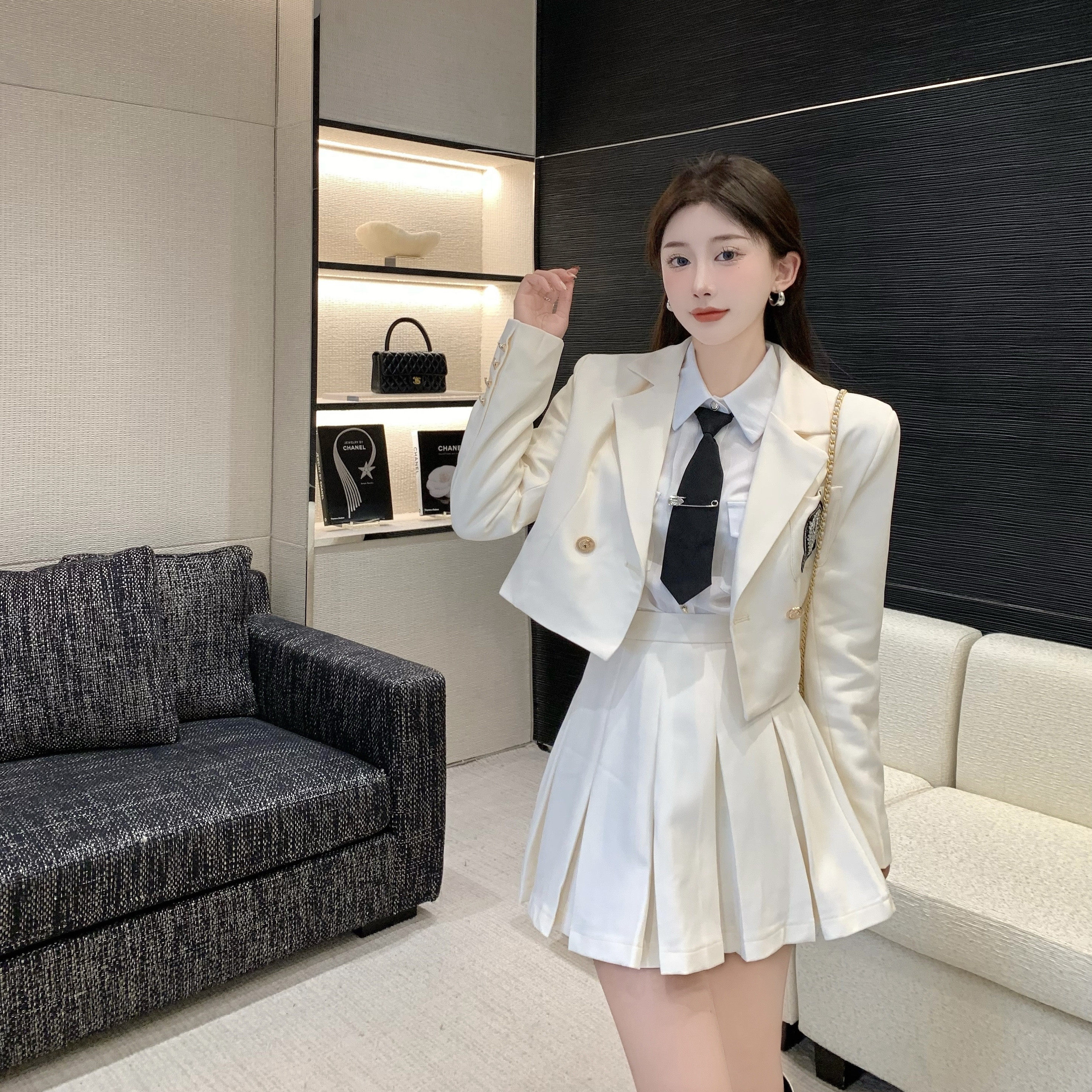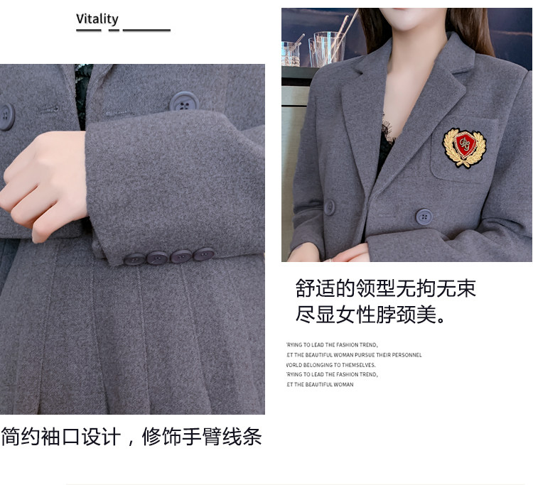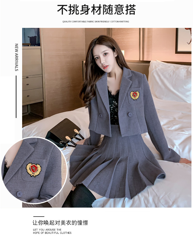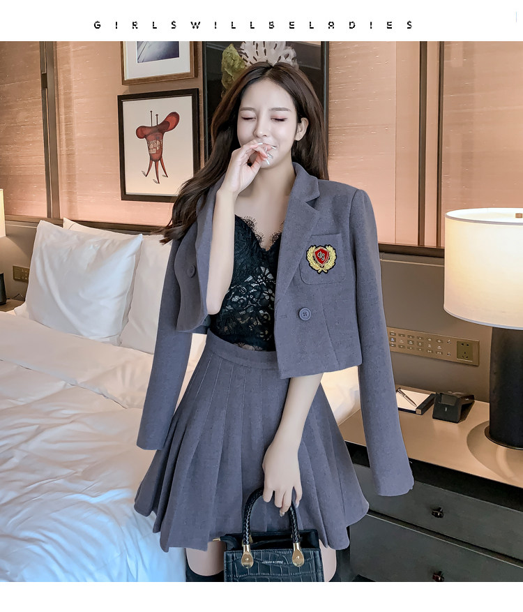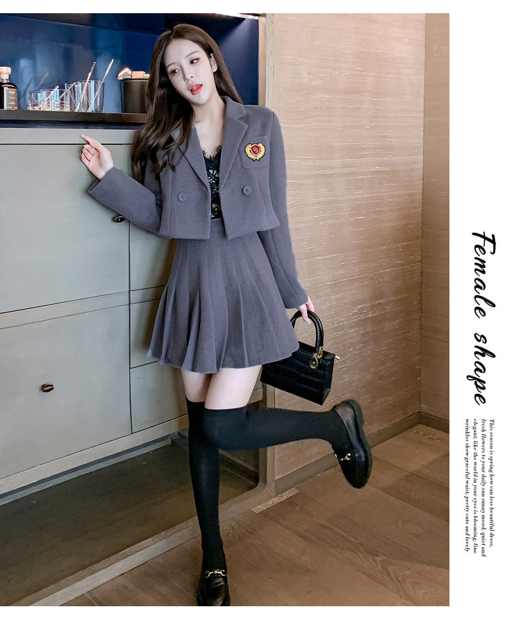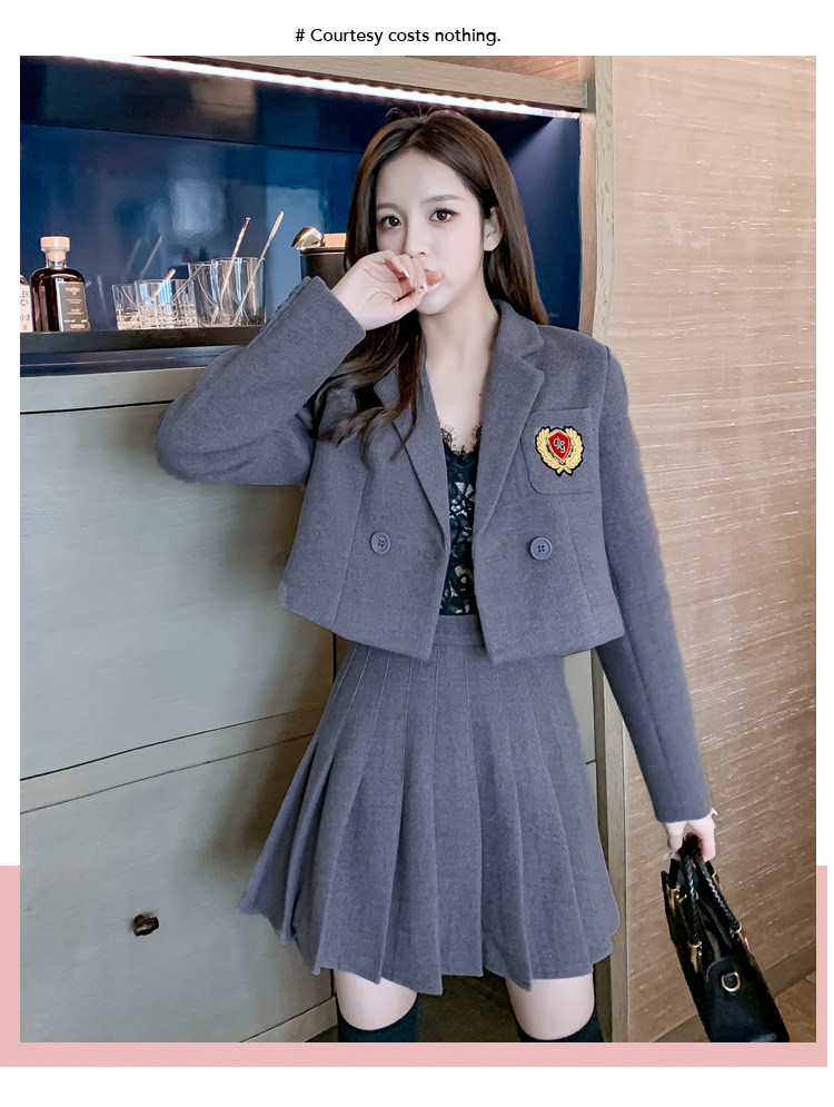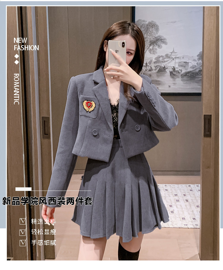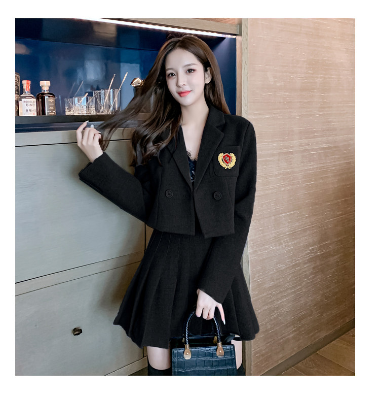 DearGod正韓女裝春秋百搭香港復古chic2022年新款女短款西裝外套高腰百褶裙套裝潮