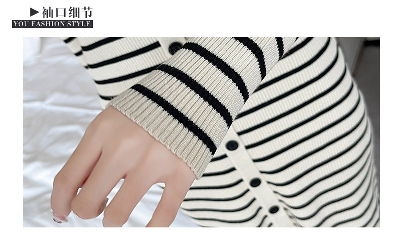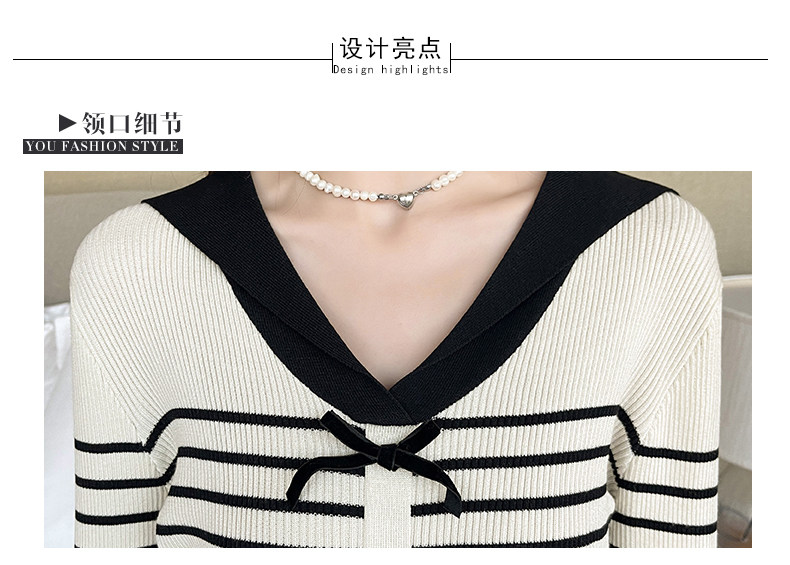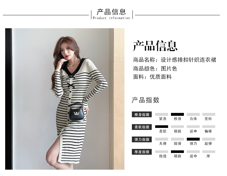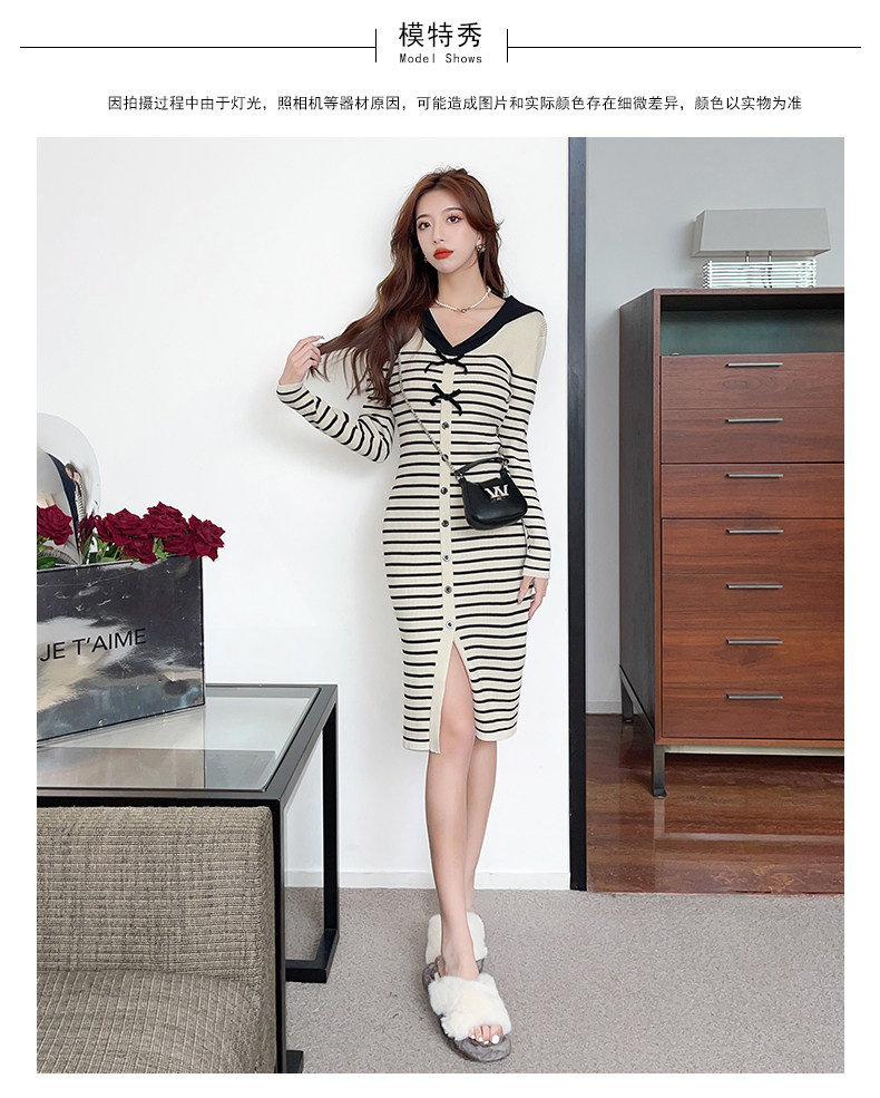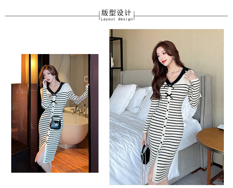 DearGod正韓女裝2022秋冬新款正韓設計感減齡海軍領過膝開叉長袖針織條紋裙子洋裝女裝