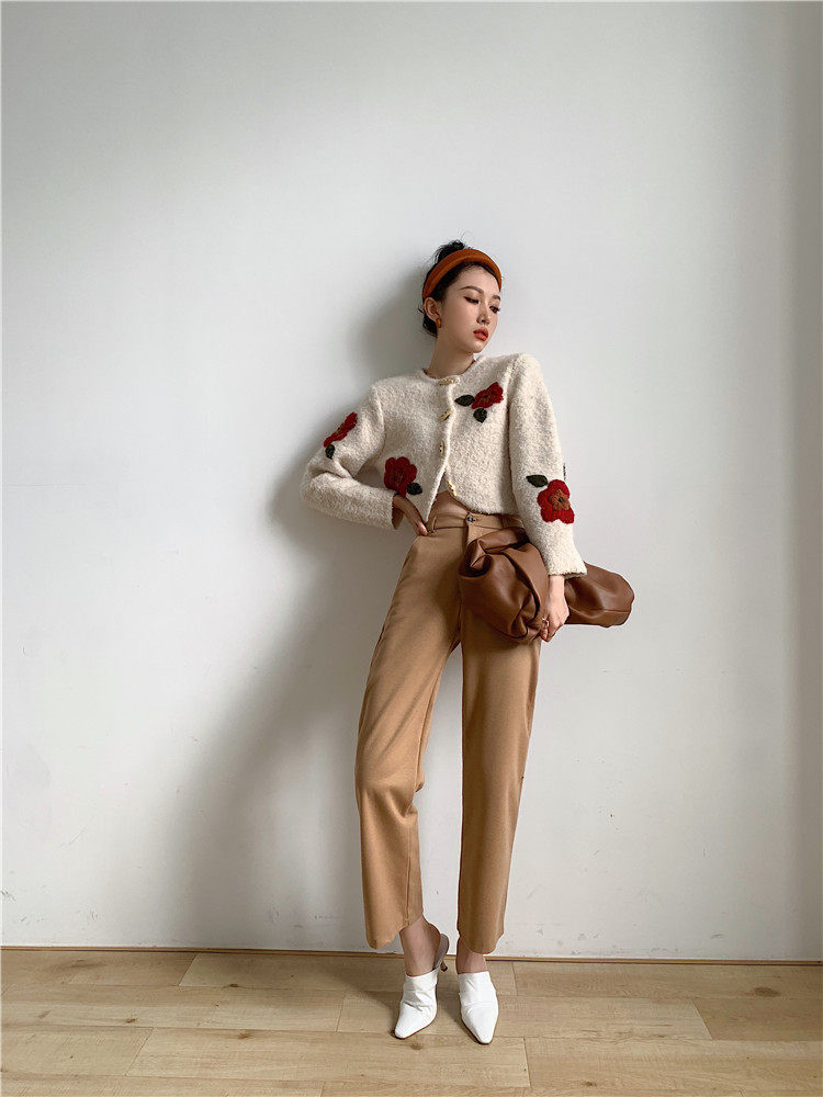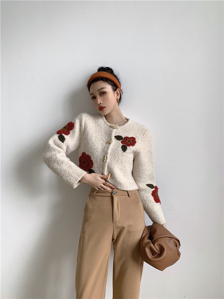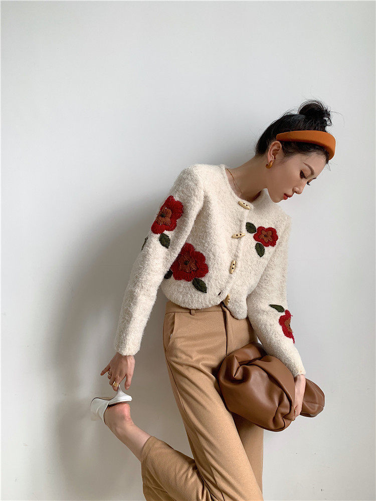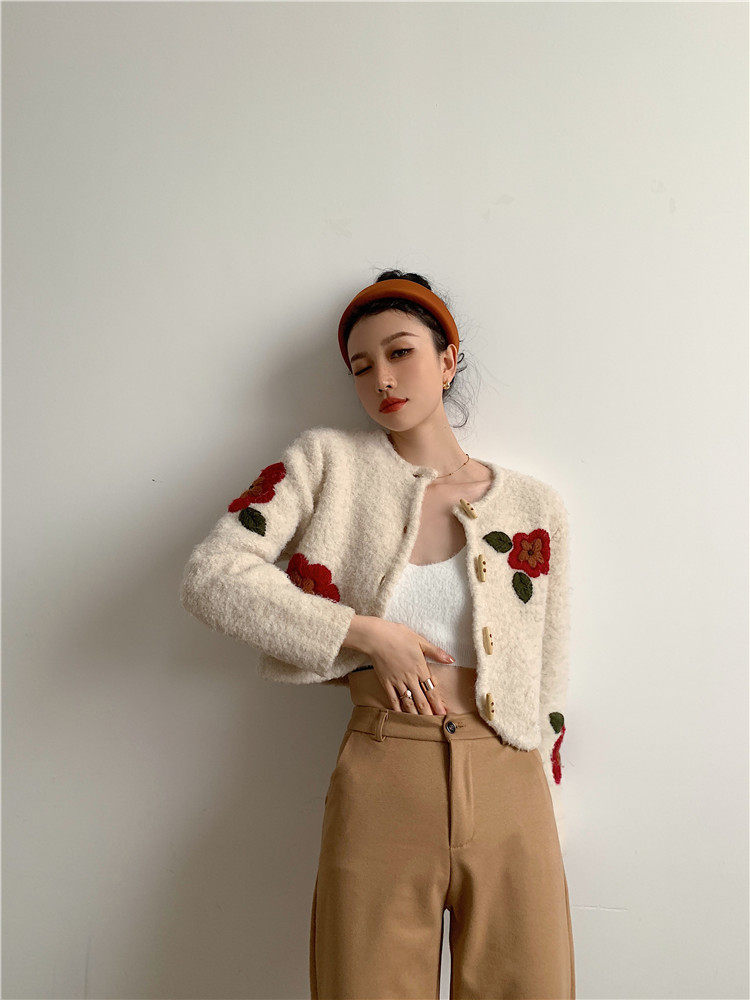 DearGod正韓女裝港風chic羊羔毛外套女2022秋冬款甜美減齡重工手工刺繡花針織開衫