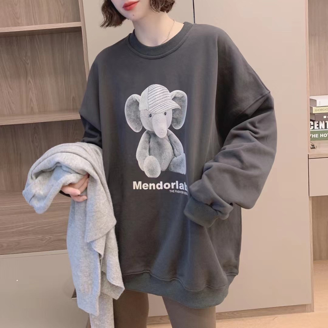 DearGod正韓女裝歐洲站2022秋季新款慵懶風圓領卡通字母小象印花寬松套頭衛衣女潮