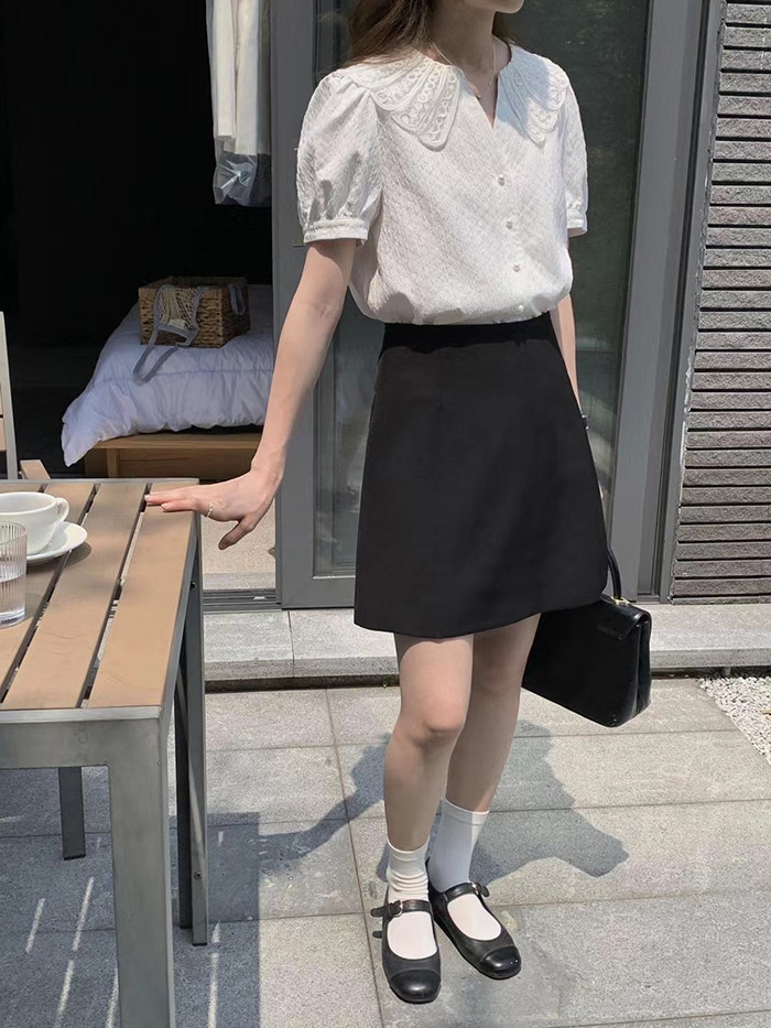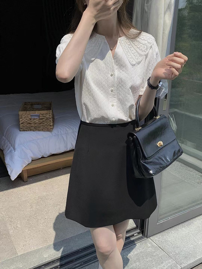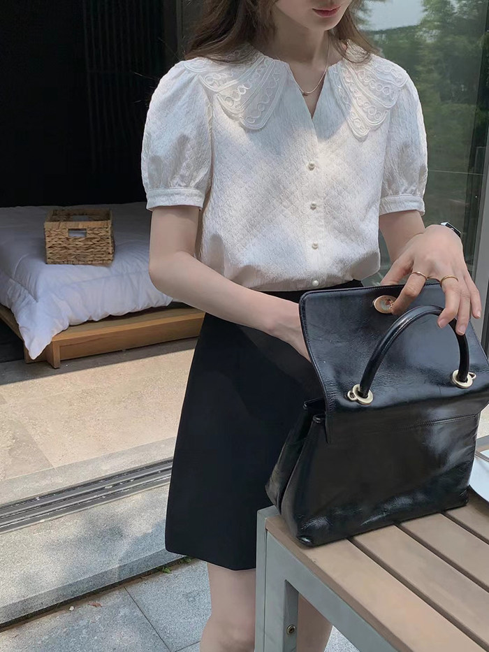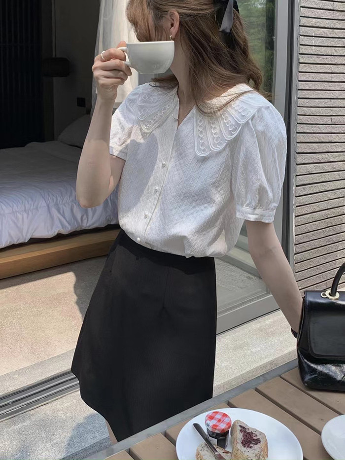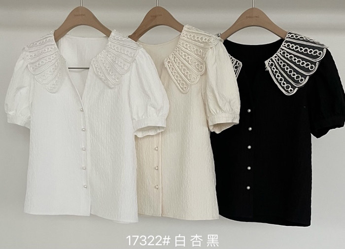 DearGod正韓女裝2022年新款夏季襯衫女設計感正韓鏤空領短袖襯衣氣質顯瘦溫柔小衫