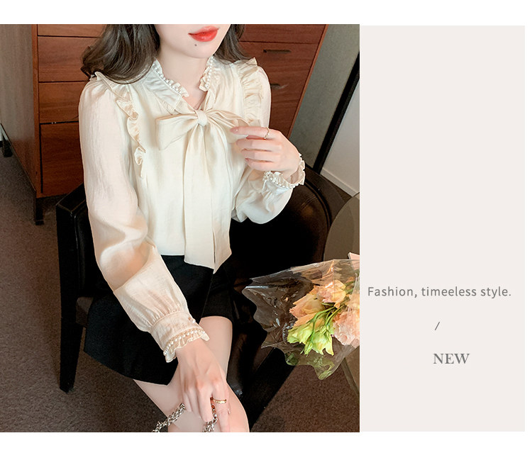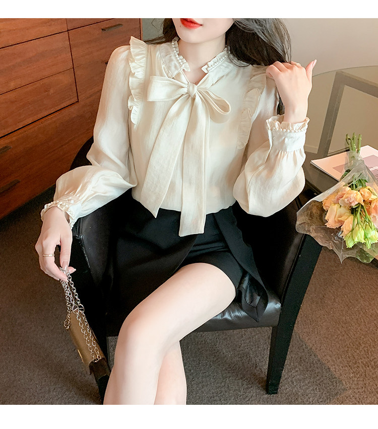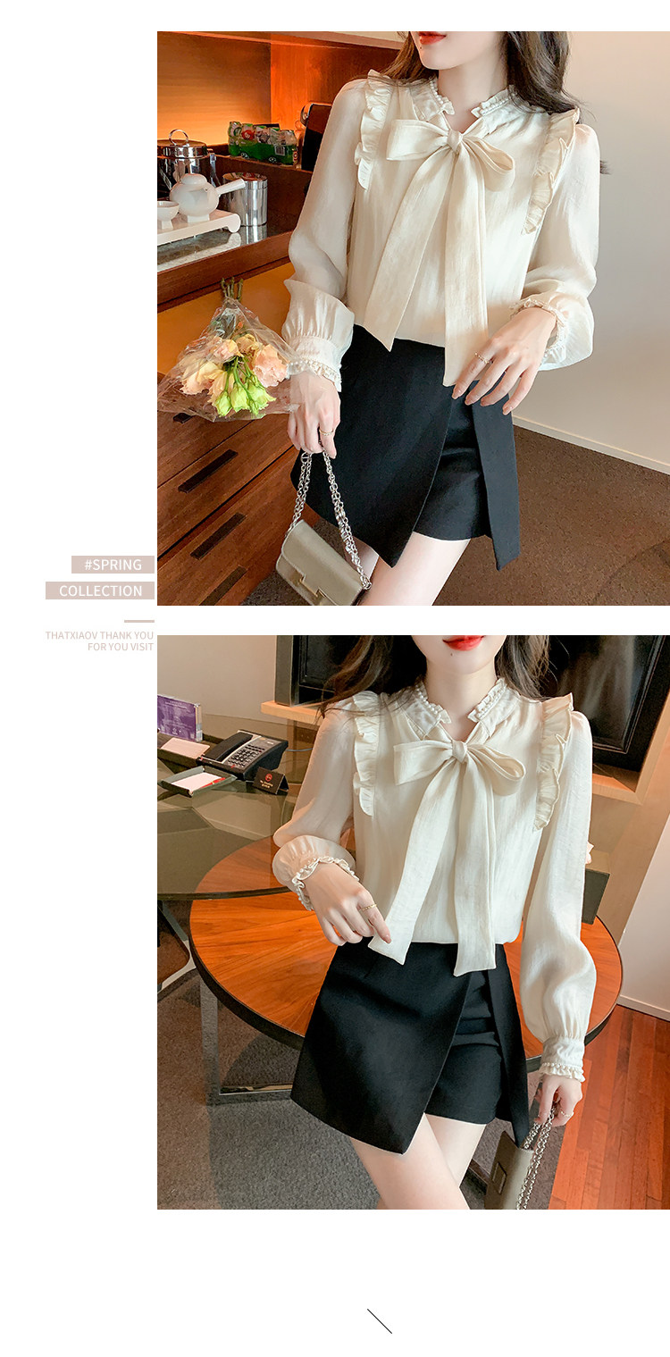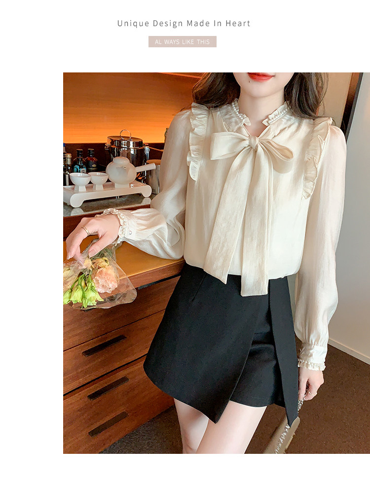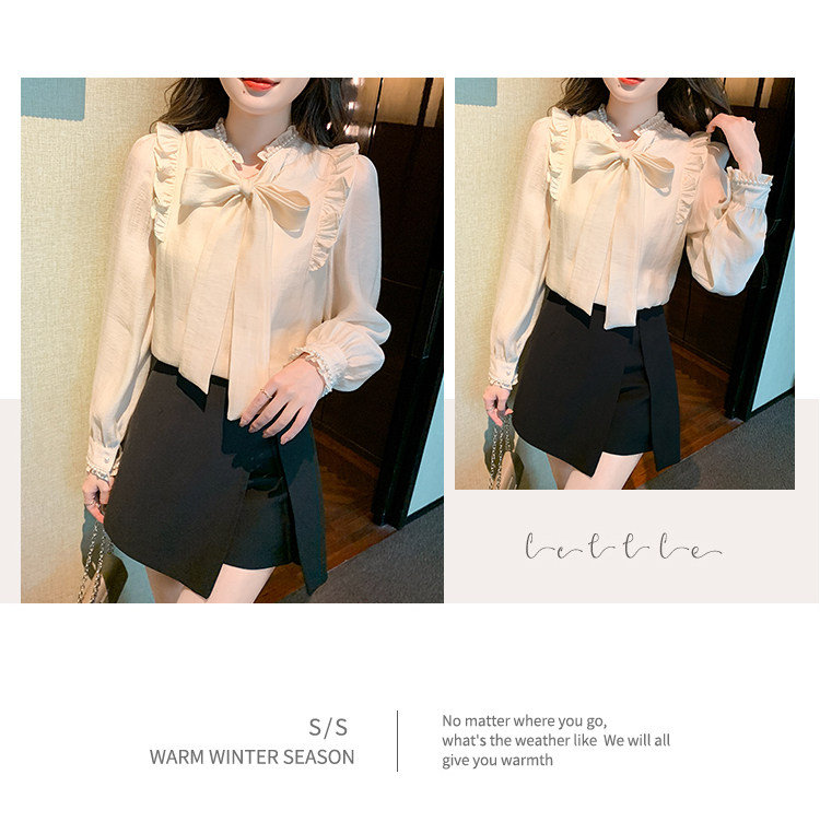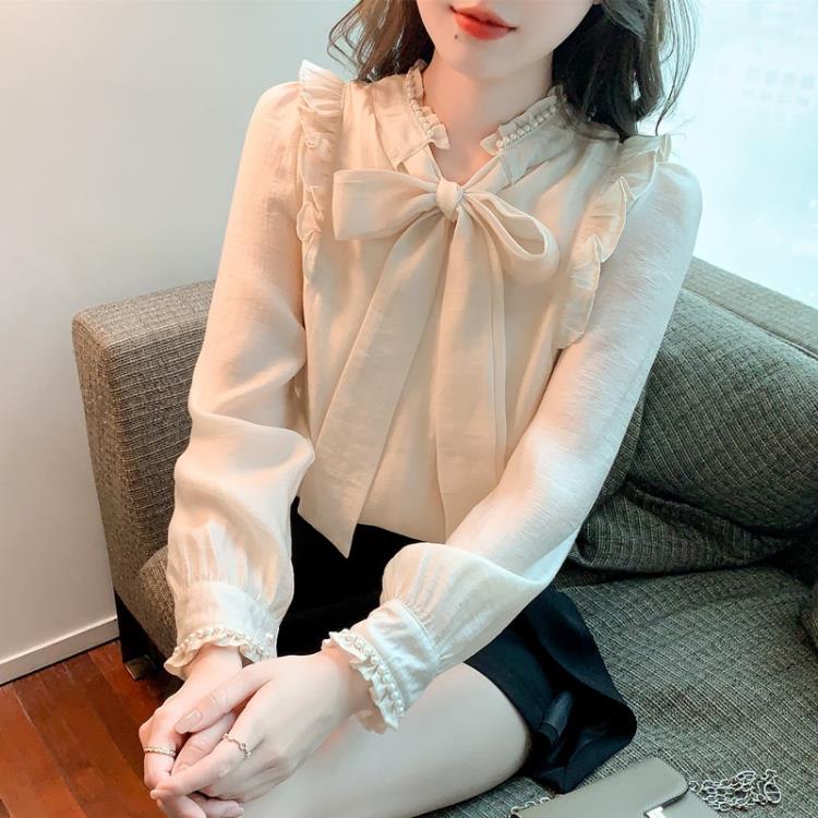 DearGod正韓女裝法式宮廷風氣質雪紡上衣女2022秋冬新款設計感小眾蝴蝶結長袖襯衫