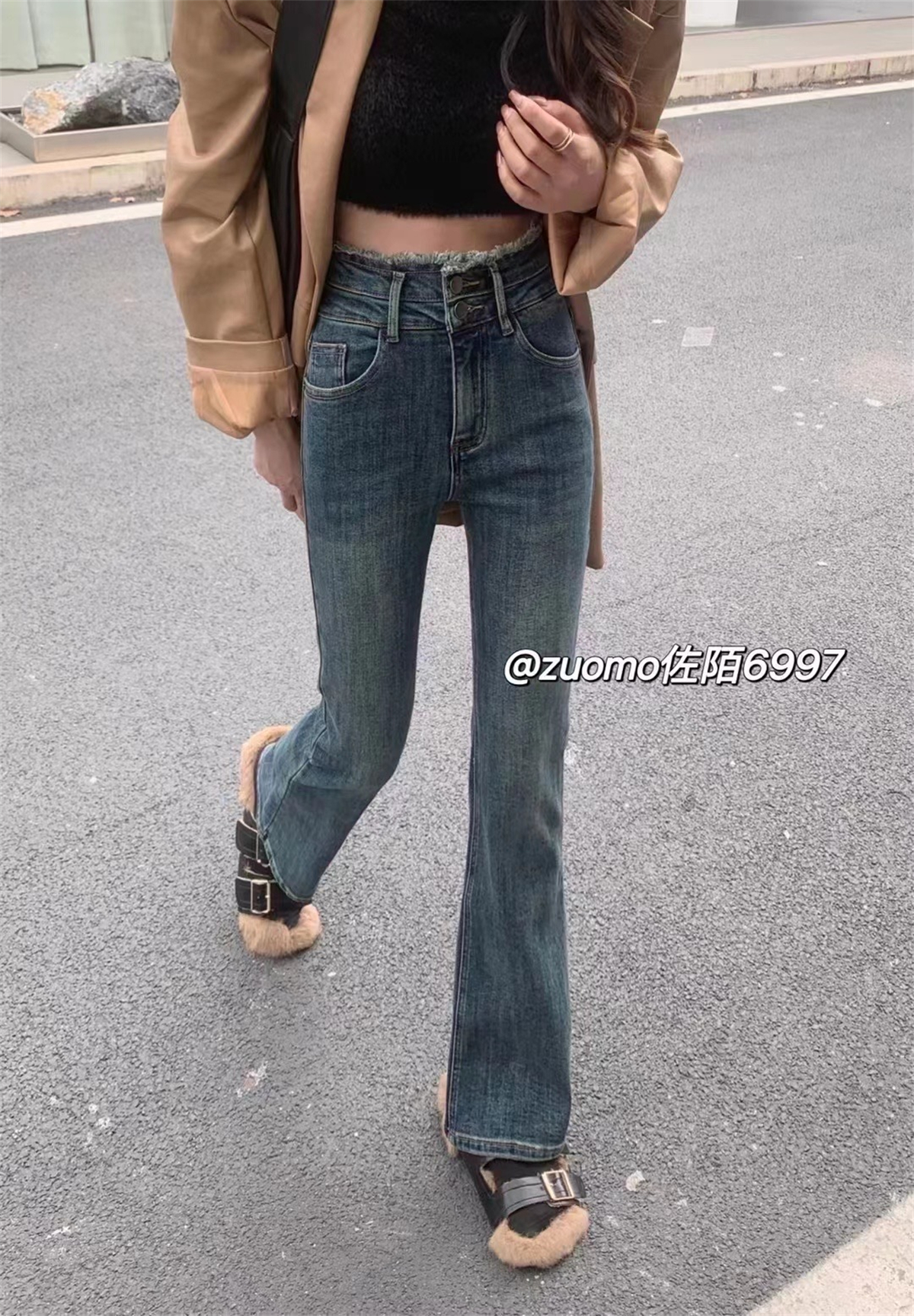 DearGod正韓女裝ZUOMO高腰牛仔褲女韓國冬季百搭直筒修身顯瘦微喇叭闊腿褲長褲