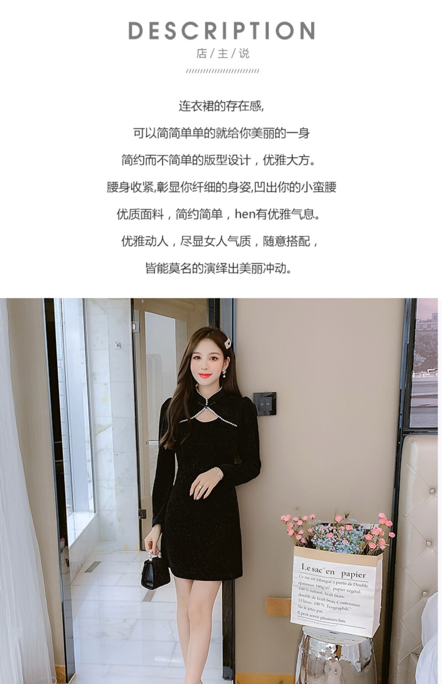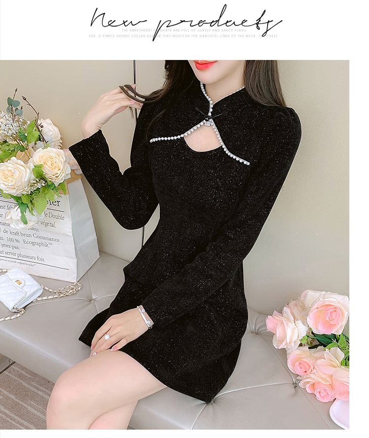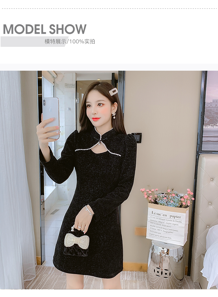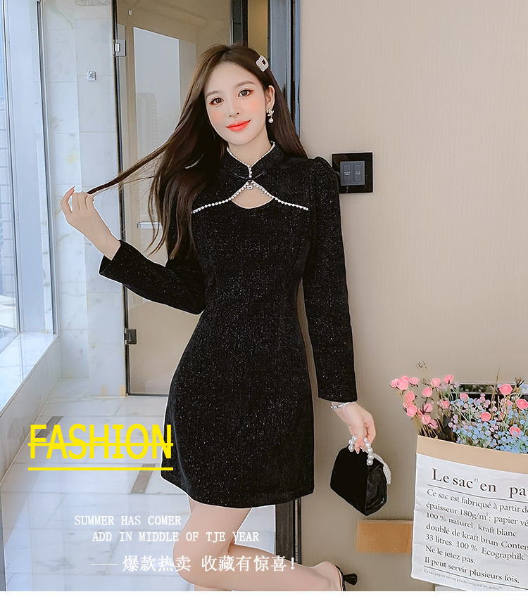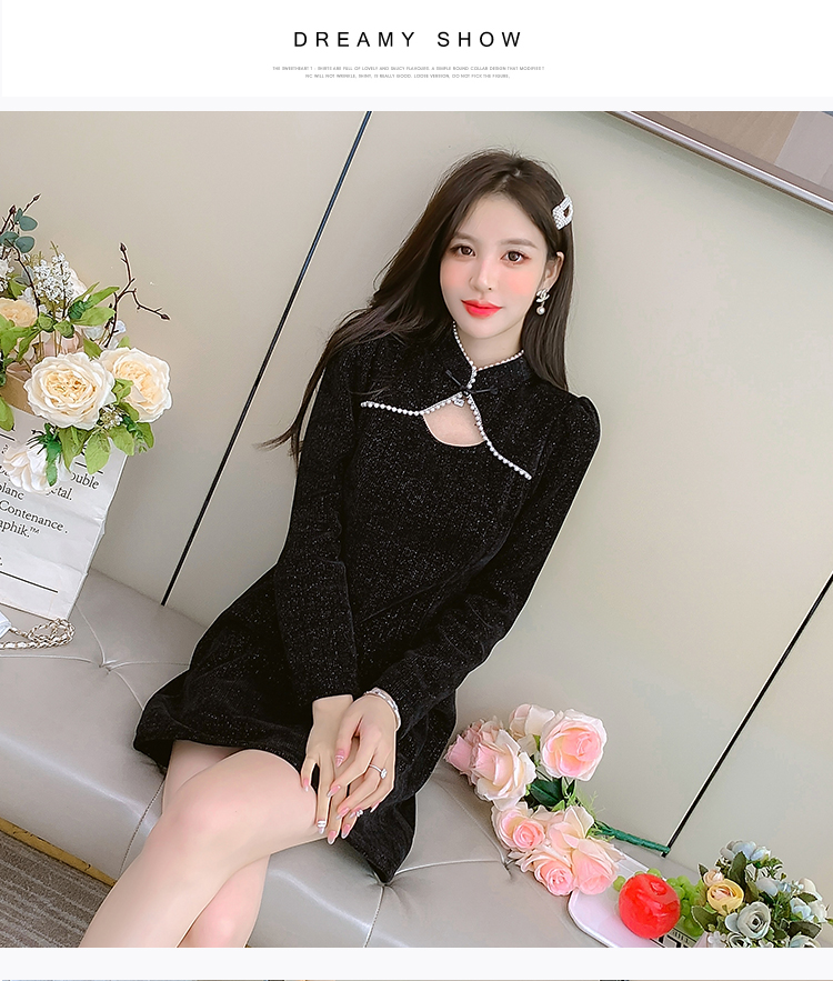 DearGod正韓女裝復古氣質高級感旗袍改良顯瘦連身裙秋款女裝2022新款a型小黑裙