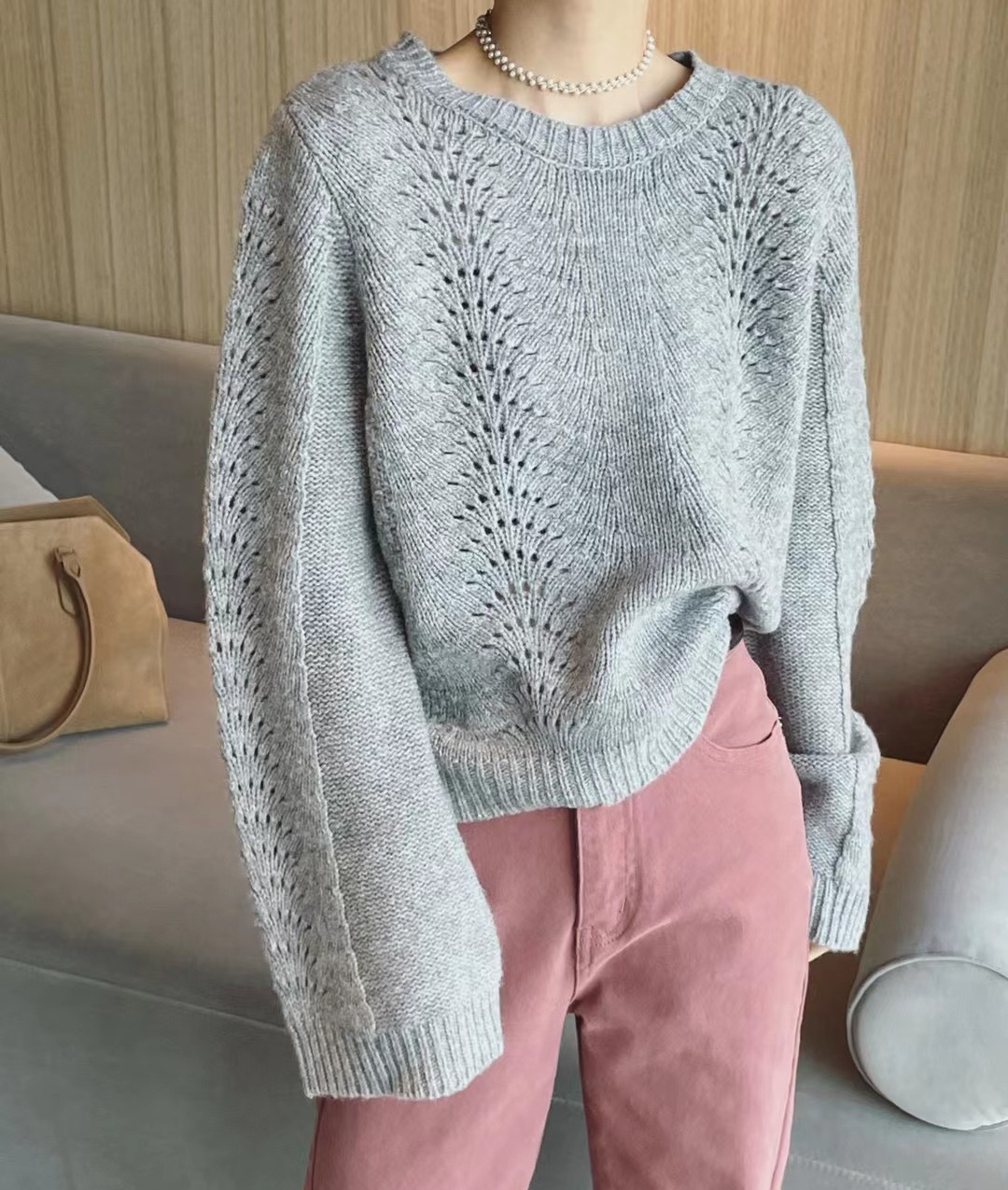 DearGod正韓女裝歐洲站2022秋冬新款時尚圓領鉤花鏤空設計感純色羊毛針織衫毛衣女