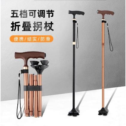 LED摺疊式老人杖 五檔調節 登山杖 老人四腳拐棍 戶外旅遊手杖 手杖 拐杖 重量僅460G