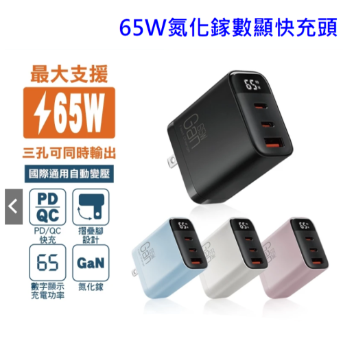 🔼產品名稱: 宏晉 65W數字顯示快充頭