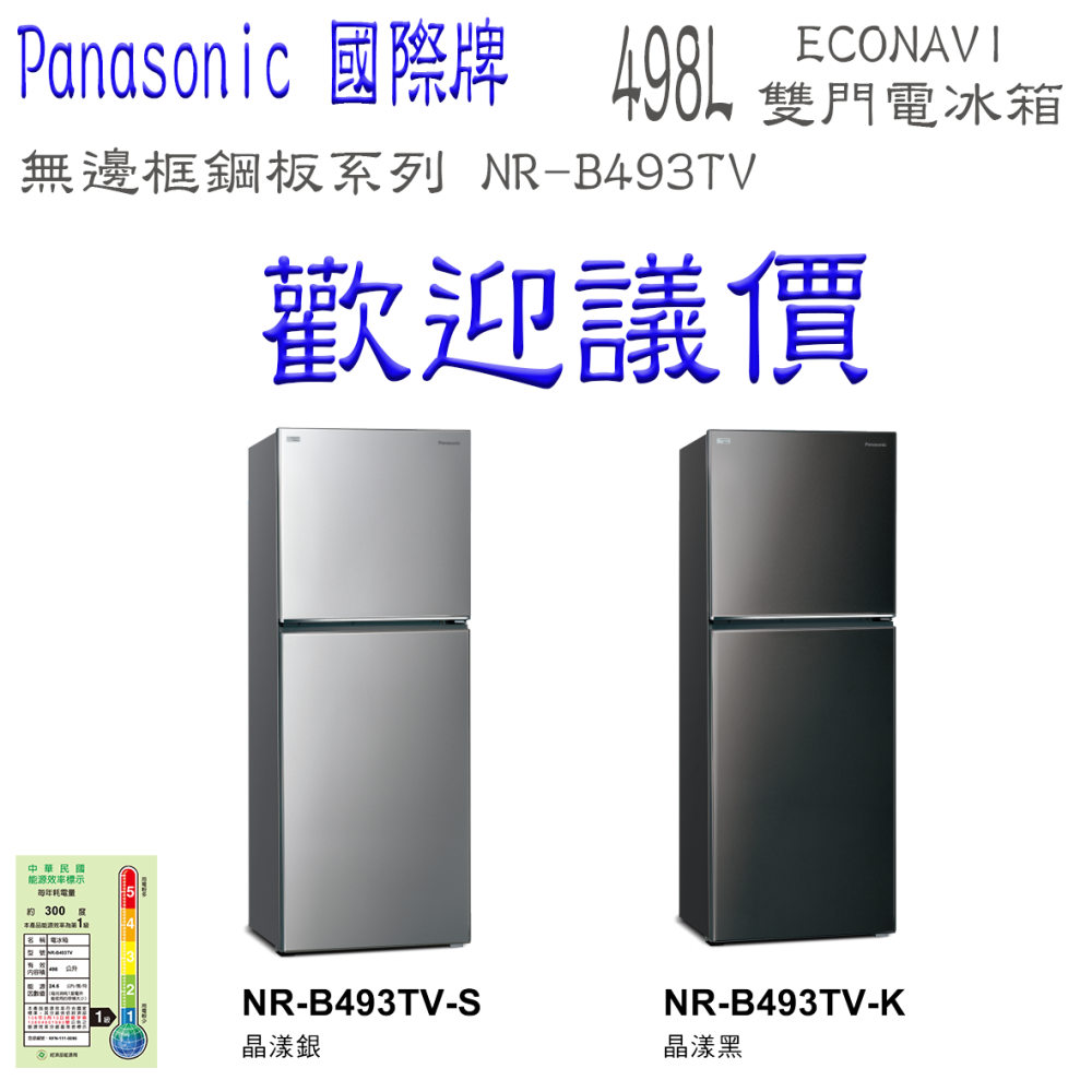 容量 : 498L 冷藏室*348L、冷凍室*150L