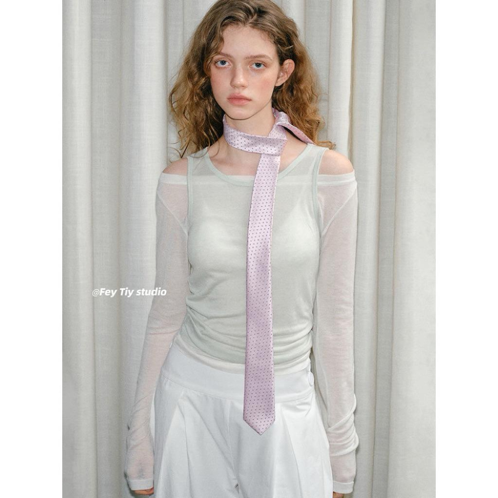 𝟑𝐮𝐧𝐢𝐨𝐧|粉色珍珠音調小眾設計時髦復古領帶女美式學院風手打細窄腰帶百搭配飾