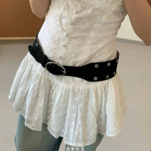 𝟑𝐮𝐧𝐢𝐨𝐧|隔日到貨|韓版復古雙排仿麂皮絨面腰帶女百搭顯瘦皮帶裝飾腰封配飾