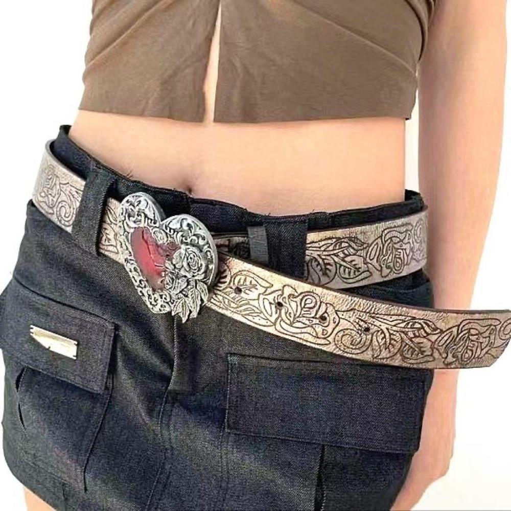 𝟑𝐮𝐧𝐢𝐨𝐧|隔日到貨|朋克風個性復古壓花愛心腰帶 y2k辣妹百搭哥特暗黑風皮帶男女同款