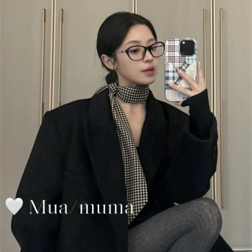 𝟑𝐮𝐧𝐢𝐨𝐧|簡約黑白格子長條絲巾氣質韓系2025春季百搭領巾復古飄帶