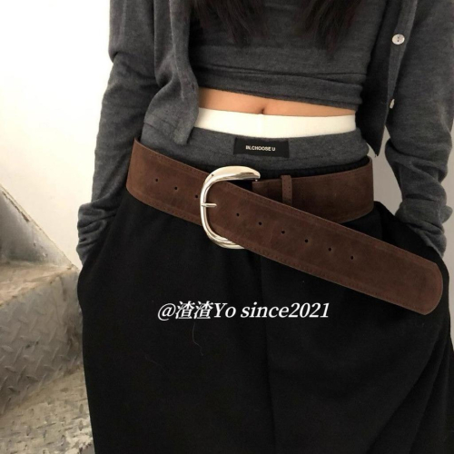 𝟑𝐮𝐧𝐢𝐨𝐧|小眾復古y2k辣妹麂皮磨砂寬邊腰帶銀扣腰封搭配疊戴寬版女