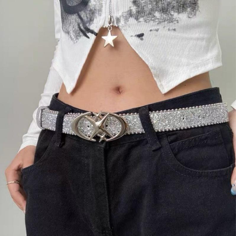𝟑𝐮𝐧𝐢𝐨𝐧|按扣皮帶女ins風銀色辣妹腰帶裝飾歐美時尚個性亮片牛仔褲帶百搭