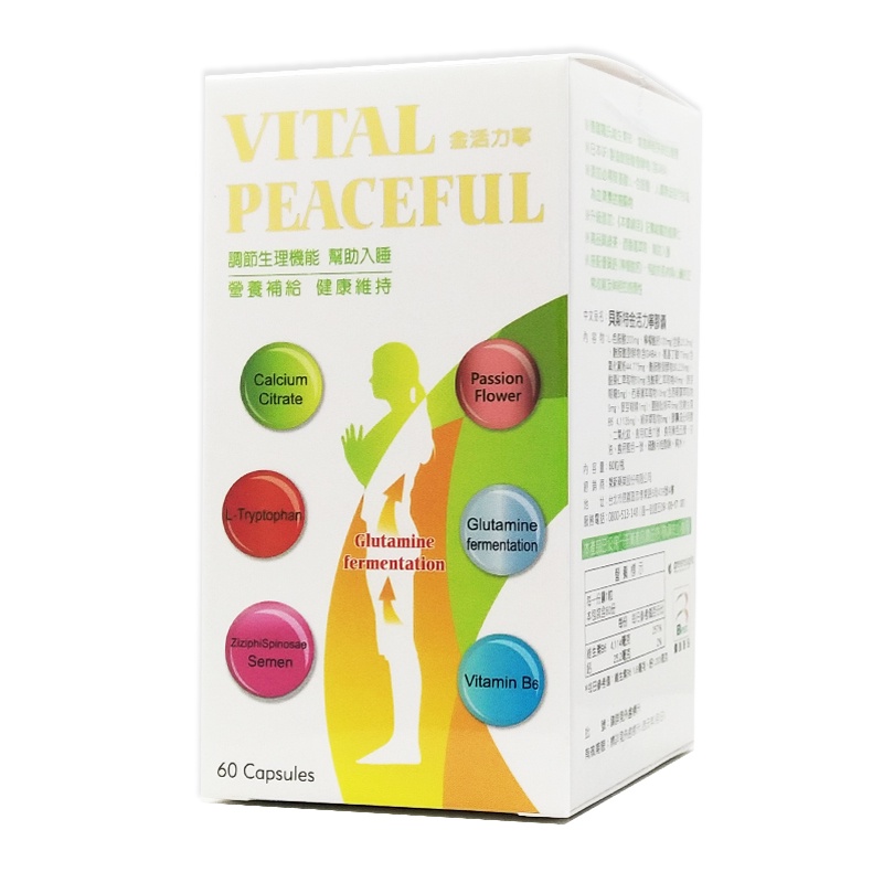 成分: L-色胺酸200毫克、檸檬酸鈣120毫克、麩胺酸發酵物75毫克(含GABA: r-胺基丁酸)、酸棗仁萃取物50毫克、西翻連萃取物10毫克、綠茶萃取物5毫克(含茶胺酸)、維生素B6 5毫克