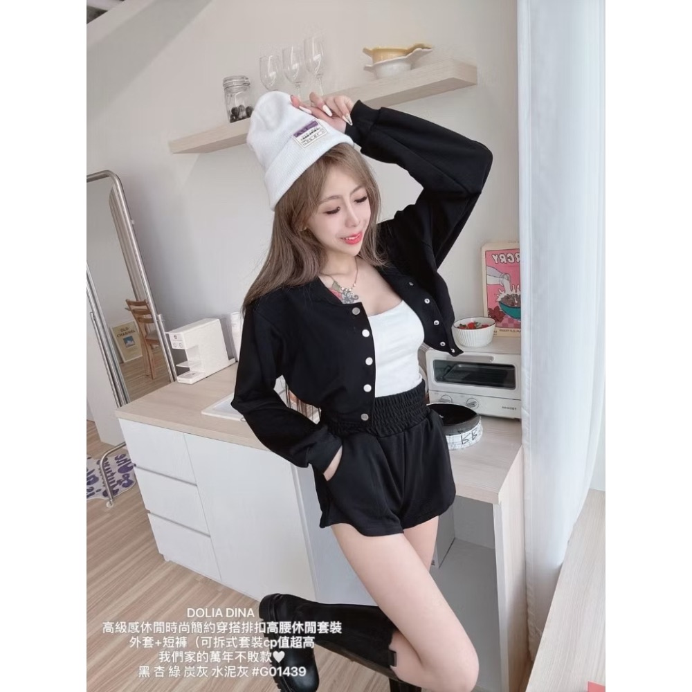 高級感休閒時尚簡約穿搭排扣高腰休閒套裝外套+短褲