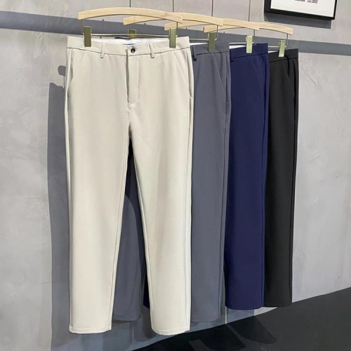 垂墜感西褲男2023春夏新款男士小西褲純色直筒修身休閒褲一件代髮