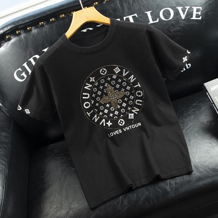 毛衣 2023新款春夏針織衫短袖男印花時尚帥氣半袖男大碼男裝上衣潮