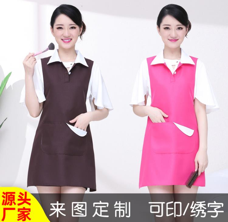 背心 正韓時尚美容院美容師工作服式女款母嬰奶茶美甲圍裙耐穿印字