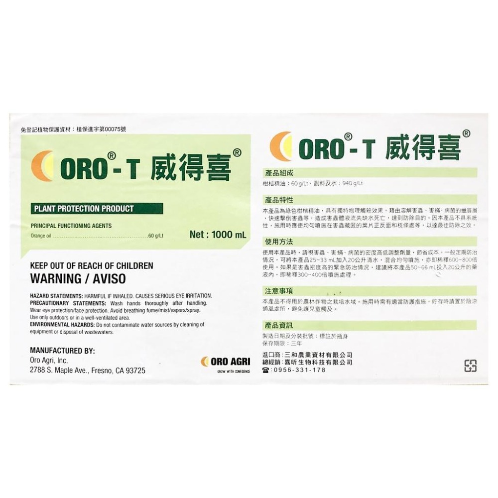ORO-T 威得喜 規格:3L 植保進字第00075號