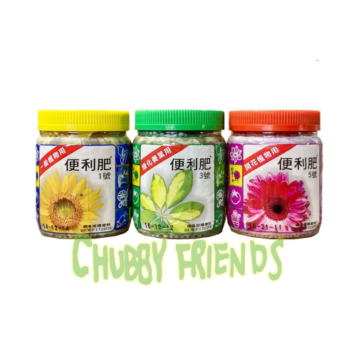 ※注意!超商取貨有物品大小及重量限制,下標前請先與賣家確認! 翠筠 便利肥 園藝控釋肥料 BENEFITCOTE 裹覆複合肥 便利肥#1 - 一般植物用 *均衡的氮磷鉀比例與完整的次微量元素,提供植物最完整的營養。 肥料品目:6-01-複合肥料 登記字號:肥進複字第0028137號 原料:硝酸銨、磷酸一鉀、磷酸一銨、硝酸鉀、硫酸鉀。 登記成分: 全氮14.0% (銨態氮9.5%、硝酸態氮4.5%) 水溶性磷酐12.0% 水溶性氧化鉀14.0% 包裝容量:400g --- 便利肥#3 - 綠化養葉用 *氮磷鉀比例1.6:1:1.2與完整次微量元素,提供需氮較低之觀葉植物生長,使植物快速生長而不徒長。 肥料品目:6-01-複合肥料 登記字號:肥進複字第0028136號 原料:硝酸銨、磷酸一鉀、磷酸一銨、硝酸鉀、硫酸鉀。 登記成分: 全氮16.5% (銨態氮9.5%、硝酸態氮7.0%) 水溶性磷酐10.0% 水溶性氧化鉀12.0% 包裝容量:400g --- 便利肥#5 - 開花植物用 *氮磷鉀比例1:2:1用於高磷多的植物,可供盆花或果樹開花期前施用,長期供應高磷肥料,讓植物營養生長停止,啟動生殖生長,如期開出高品質花朵。 肥料品目:6-01-複合肥料 登記字號:肥進複字第0028138號 原料:硝酸銨、磷酸一鉀、磷酸一銨、硝酸鉀、硫酸鉀。 登記成分: 全氮15% (銨態氮12.5%、硝酸態氮2.5%) 水溶性磷酐21.0% 水溶性氧化鉀11.0% 包裝容量:400g --- 另有10KG大包裝請聊聊訂購 ※禁止添加於食品※