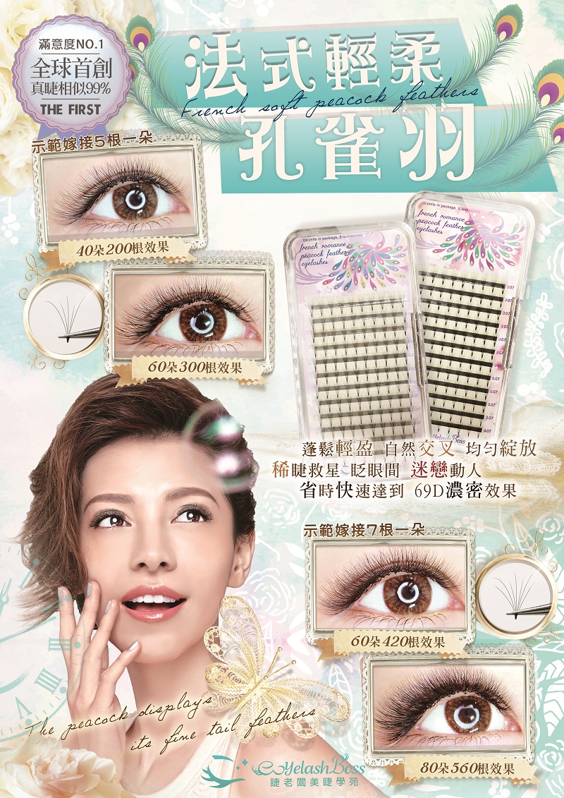 以三種不同長度做多種排列成三根或五根一束的孔雀羽,