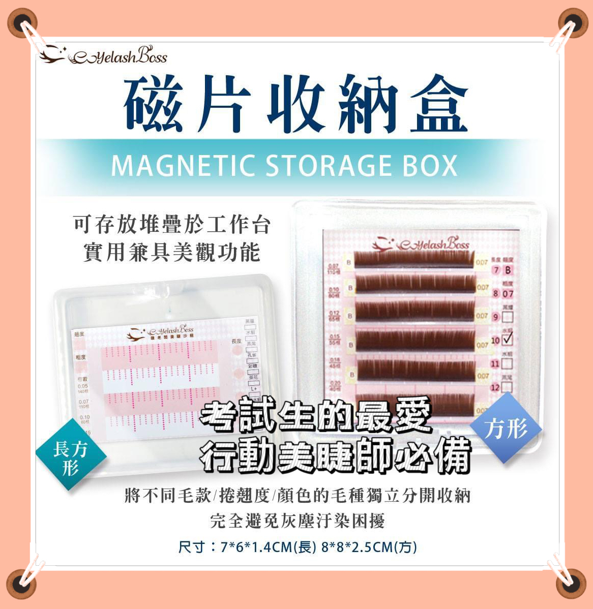 完全避免灰塵汙染困擾.同時磁片收納盒可讓睫毛存放更簡單