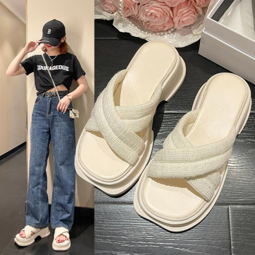 2023夏季新款拖鞋女外穿涼拖鞋時尚休閒潮搭潮松糕厚底一字拖女鞋