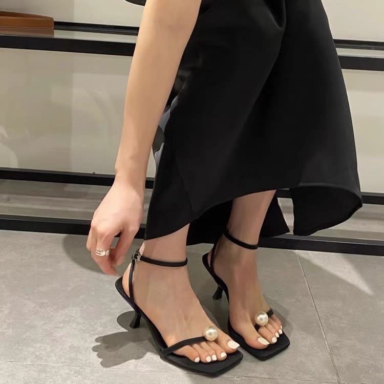 中跟鞋 法式涼鞋2023年新款女夏季百搭細跟小個子氣質名媛黑色高跟鞋