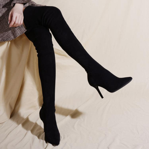 長靴 2023春秋新款絨面女細跟尖頭過膝超長彈力靴性感不掉筒松緊帶
