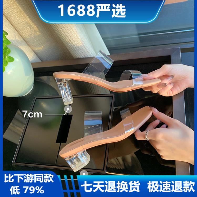 高跟鞋 葡萄媽Studiolee 仙女風拖鞋透明一字帶粗跟涼鞋女款夏季外穿