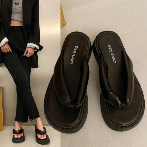 厚底鞋 涼拖鞋外穿女2023夏季新款松糕夾趾人字拖平底沙灘鞋女鞋批髮