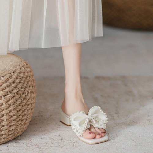 拖鞋 【不補貨】粗跟涼女夏外穿2023年蝴蝶結一字拖仙女風配裙子洋裝