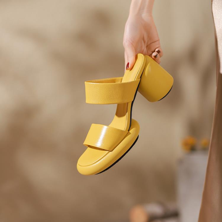 高跟鞋 2023春夏季歐美時尚新款圓跟防水臺一字帶舒適面包涼鞋拖鞋女