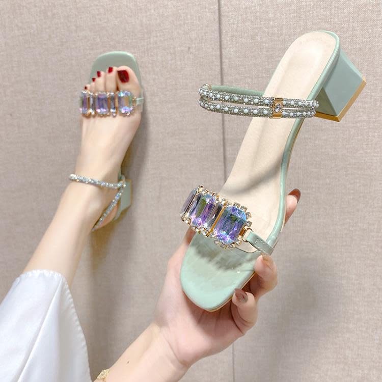高跟鞋 網紅涼拖鞋女夏外穿2023年新款百搭水鉆仙女風粗跟涼鞋網紅鞋