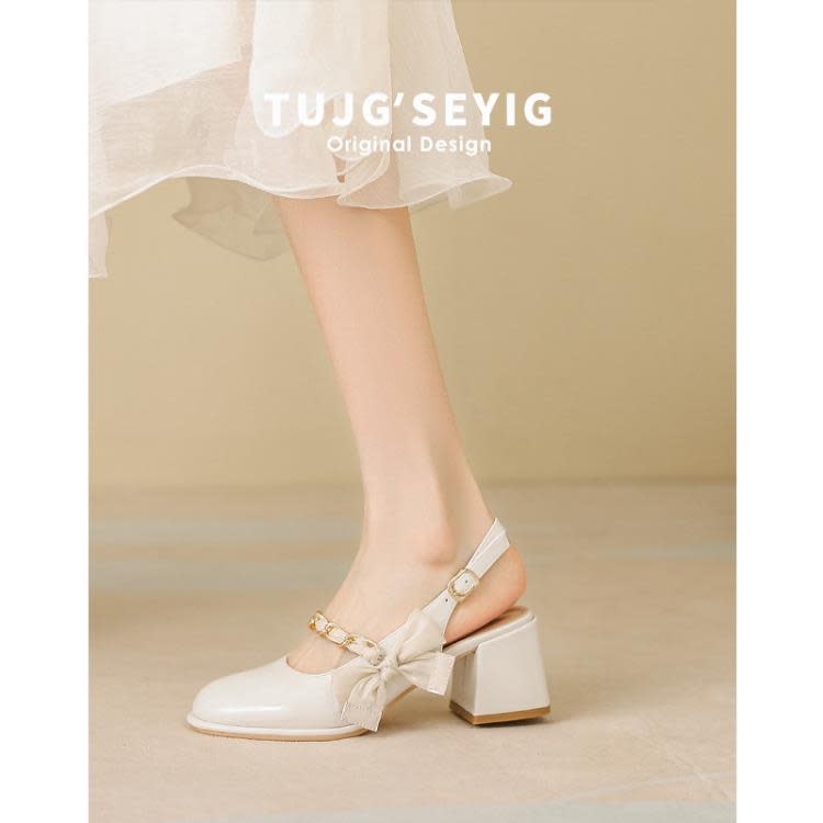 中跟鞋 代髮2023年夏季新款包頭涼鞋女仙女風粗跟后空瑪麗珍女鞋批髮