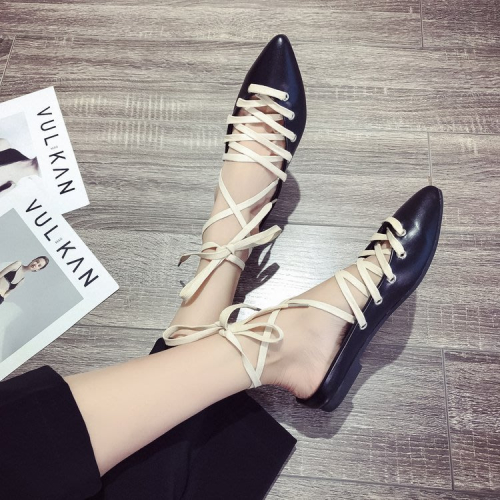 涼鞋 女2023新款女鞋夏季正韓尖頭包頭腳環交叉系帶平底女批髮